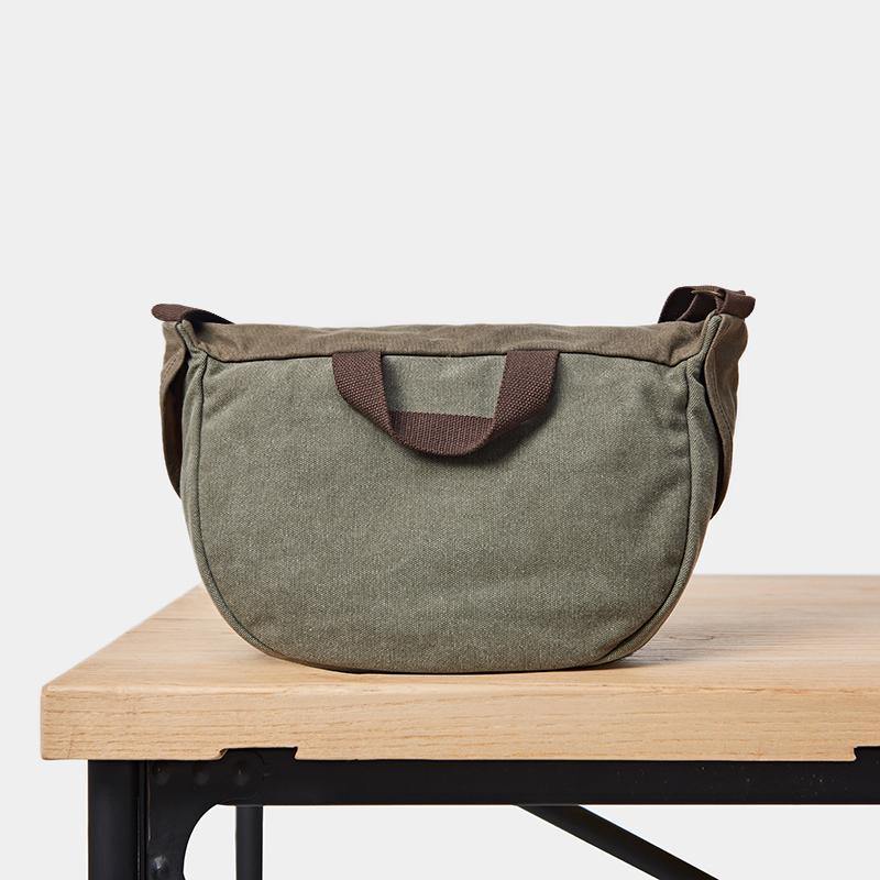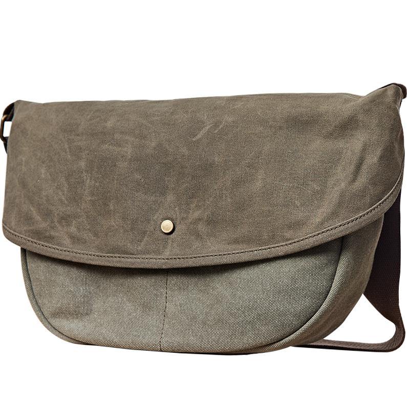 Style: Canvas Cool Mens 12 inches Side Bags Green Canvas Leather Messenger Bags Canvas Travel Courier Bag for Men