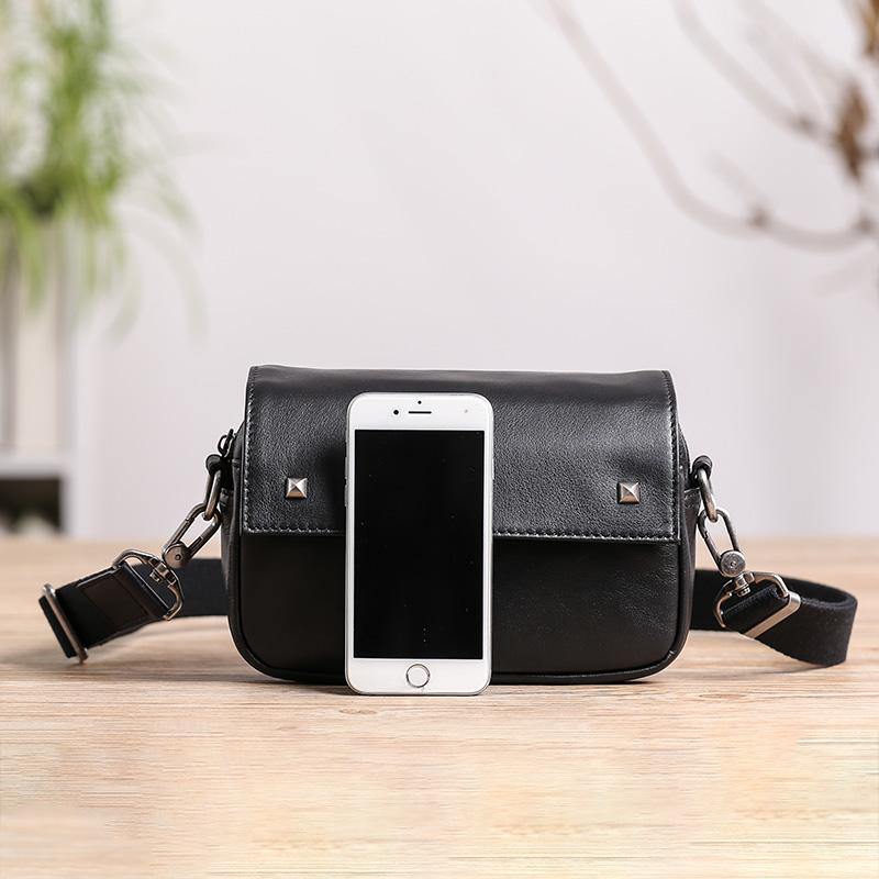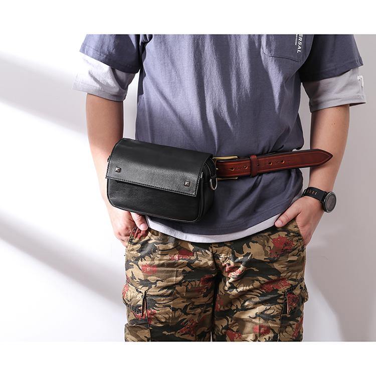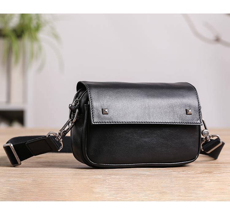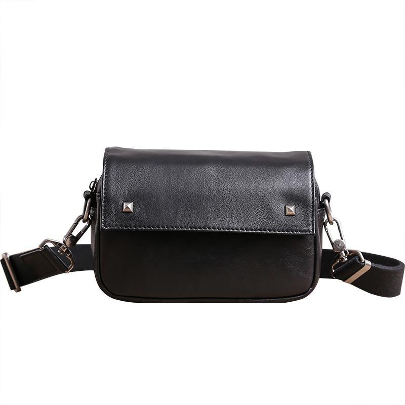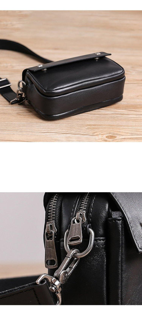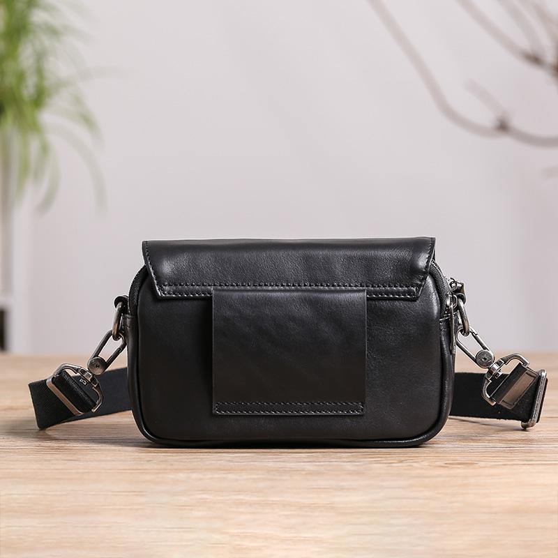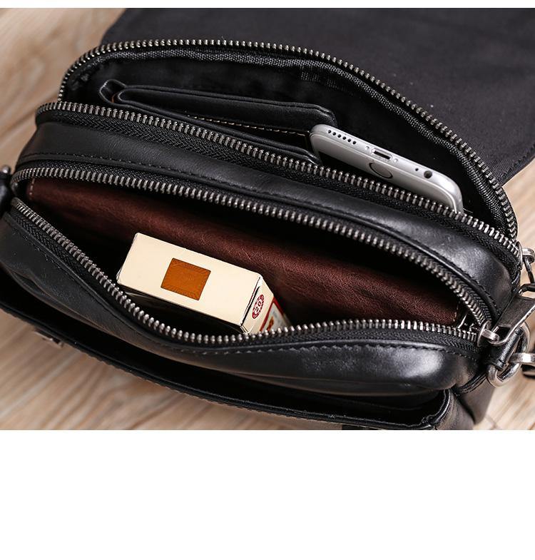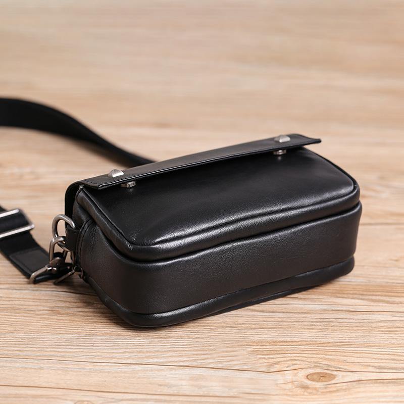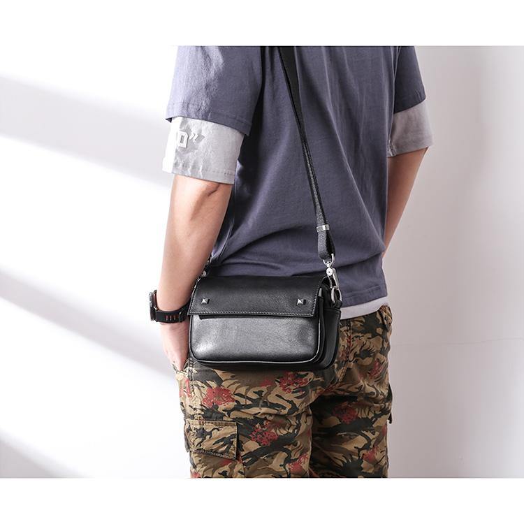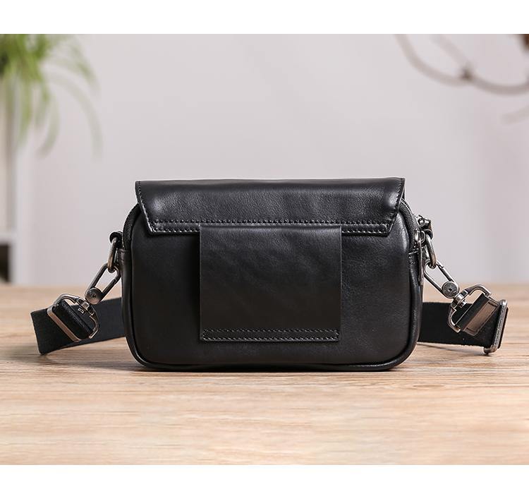 Design: Casual Black Soft Leather MENS Horizontal Side Bag Black Messenger Bag Courier Bag For Men