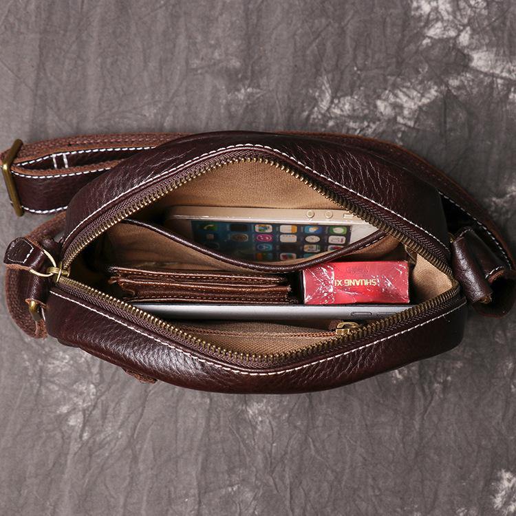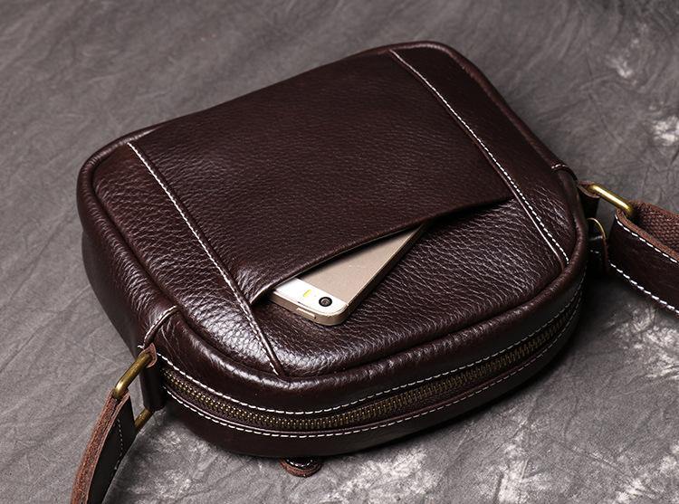 Design: Men's Black Leather Small Messenger Bag Small Side Bag Black Courier Bag For MenOverview: