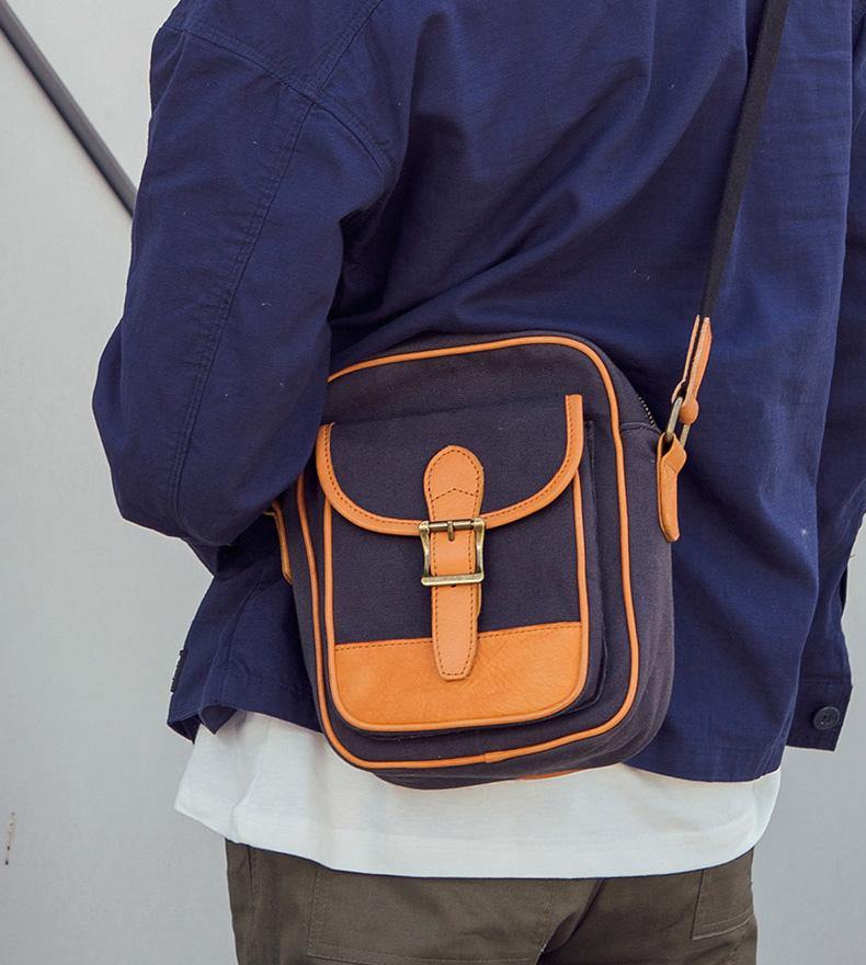 Design: Casual Navy Blue Canvas MENS Vertical SIDE BAG COURIER BAG Vertical MESSENGER BAG FOR MEN