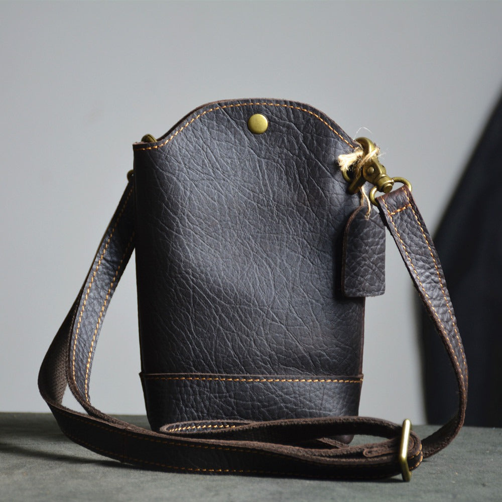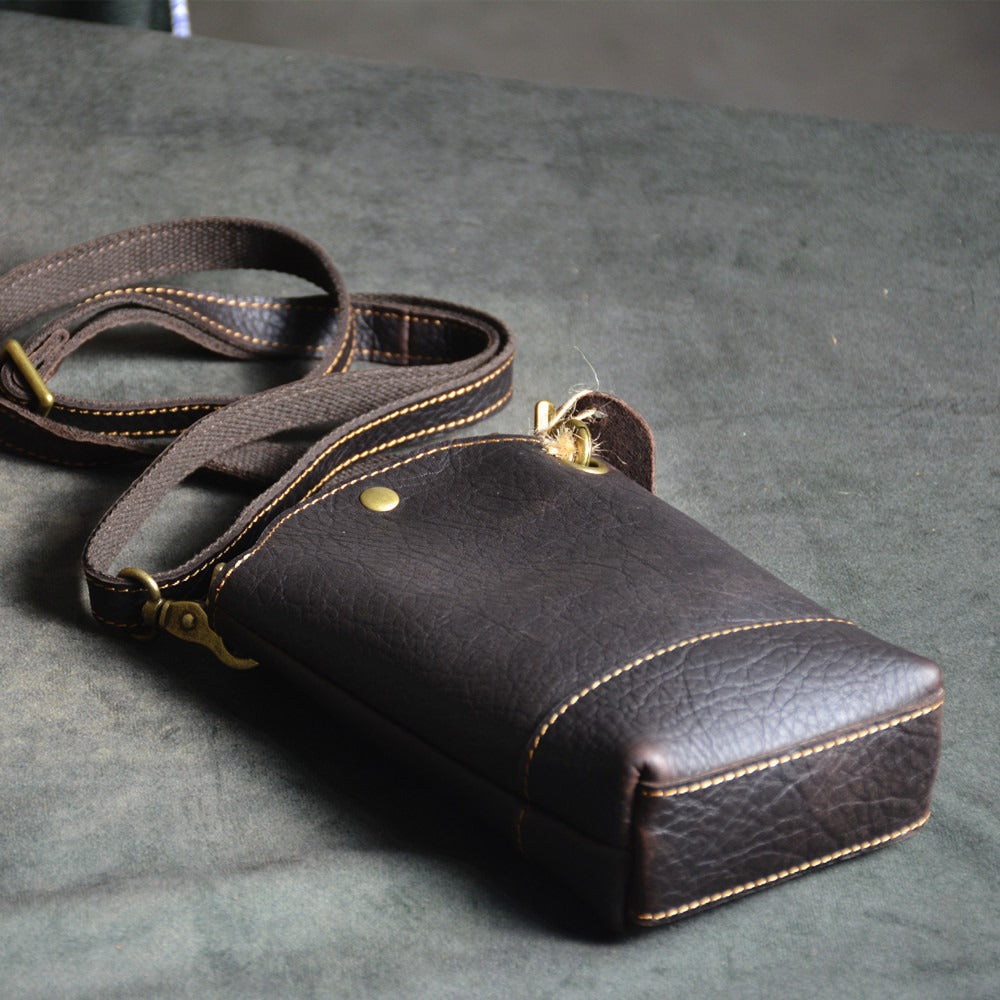 Design: Coffee Leather MEN'S Small Phone Side bag Vertical Phone Shoulder Bag FOR MEN