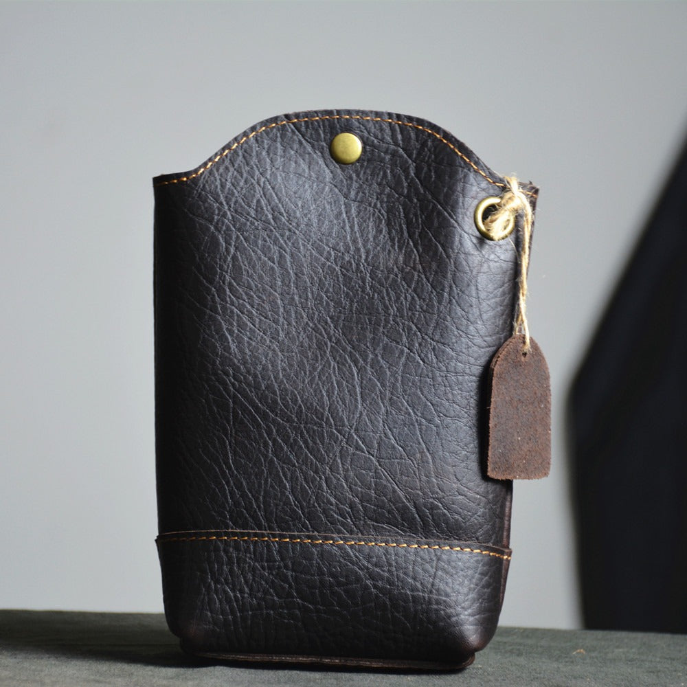 Coffee Leather MEN'S Small Phone Side bag Vertical Phone Shoulder Bag FOR MEN