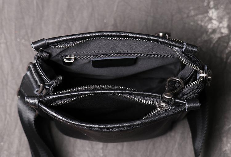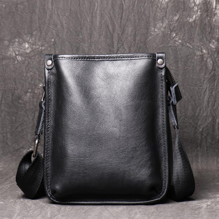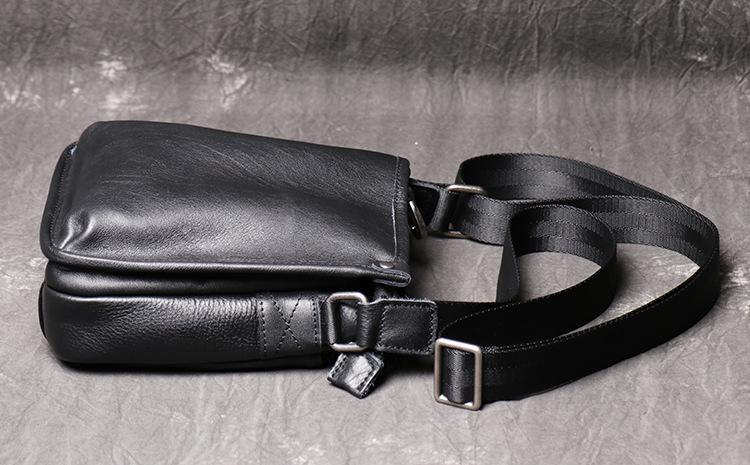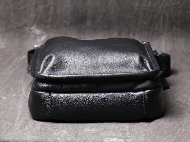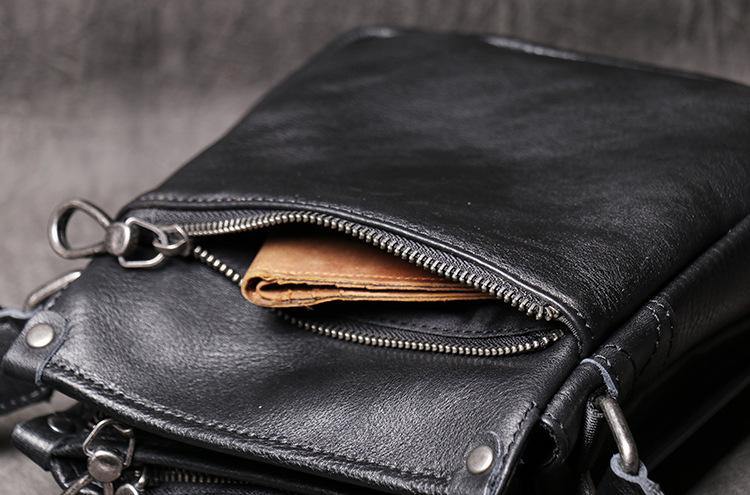 Cool Black LEATHER MENS Vertical SIDE BAGS COURIER BAG Black Vertical MESSENGER BAG FOR MEN