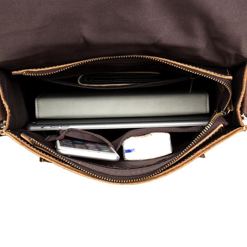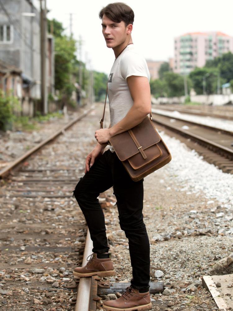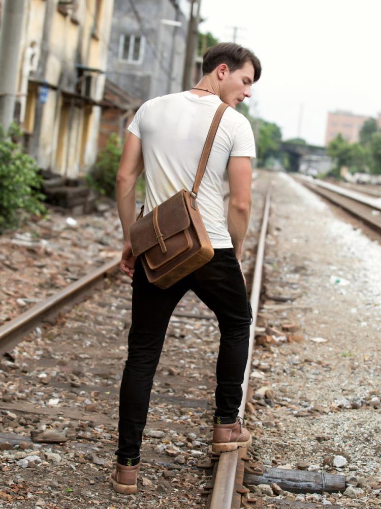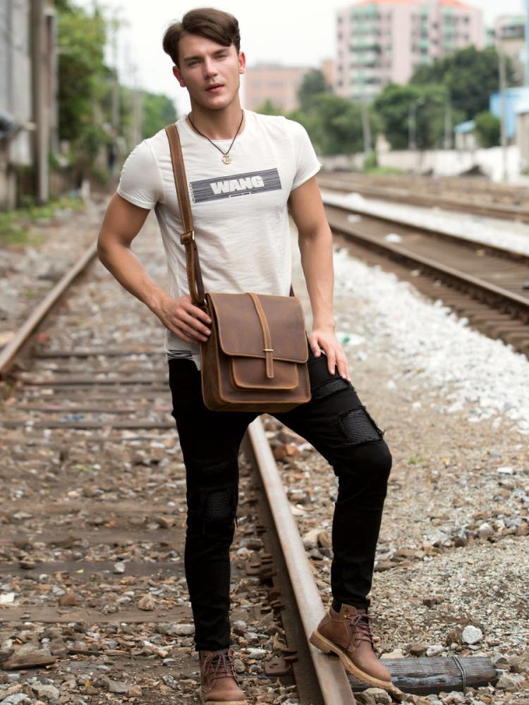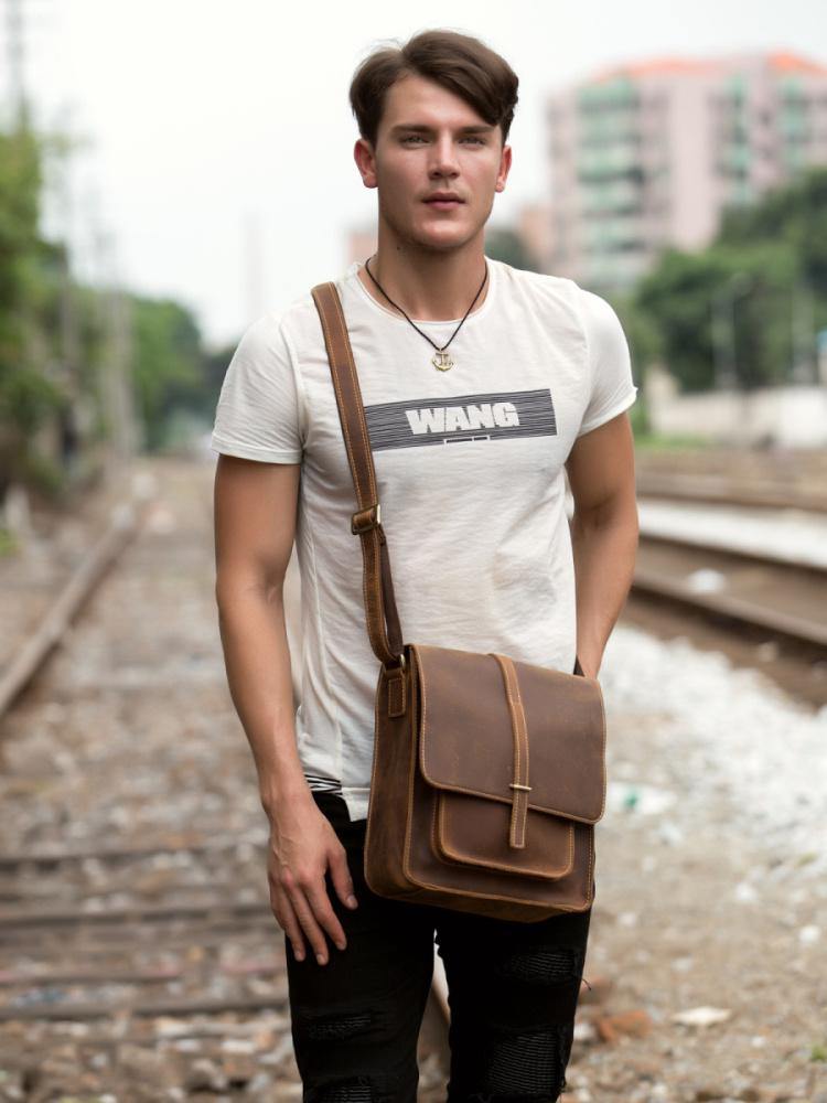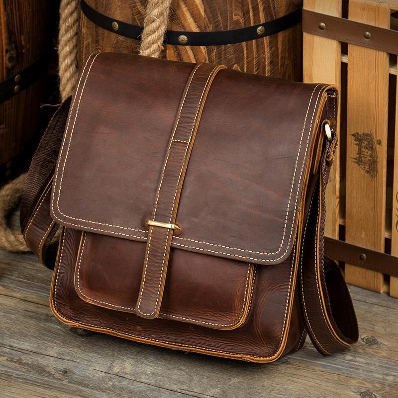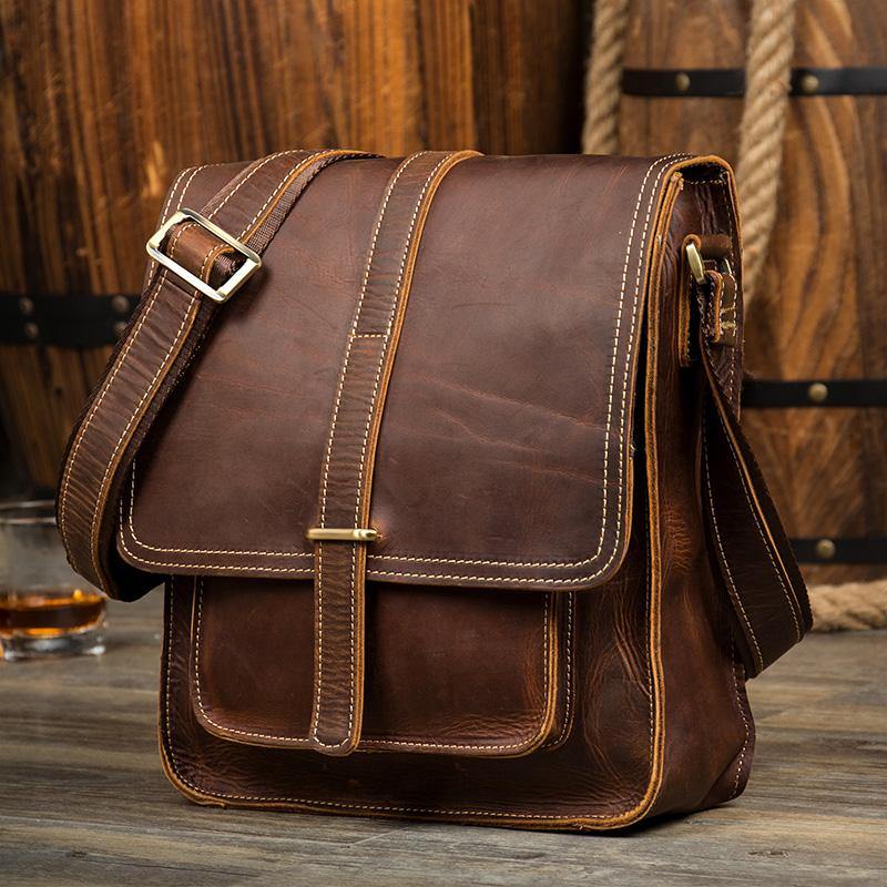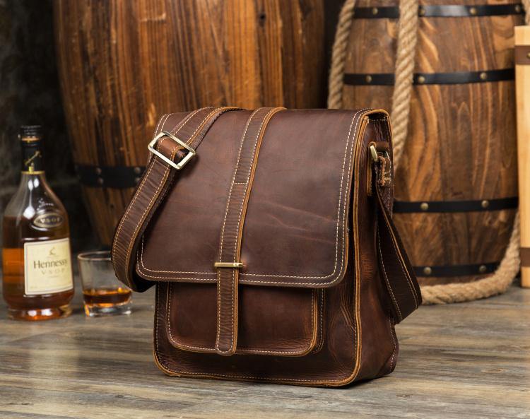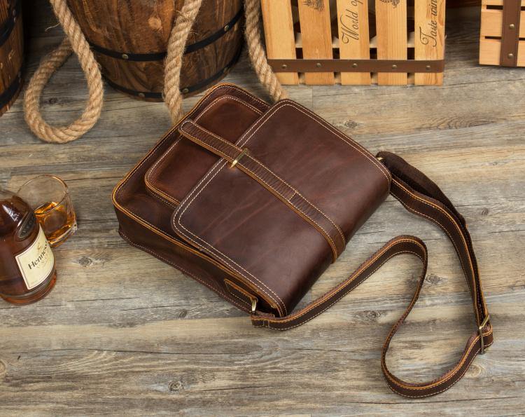 Design: Dark Brown Cool Leather 10 inches Shoulder Bags Messenger Bag Crossbody Bag for Men