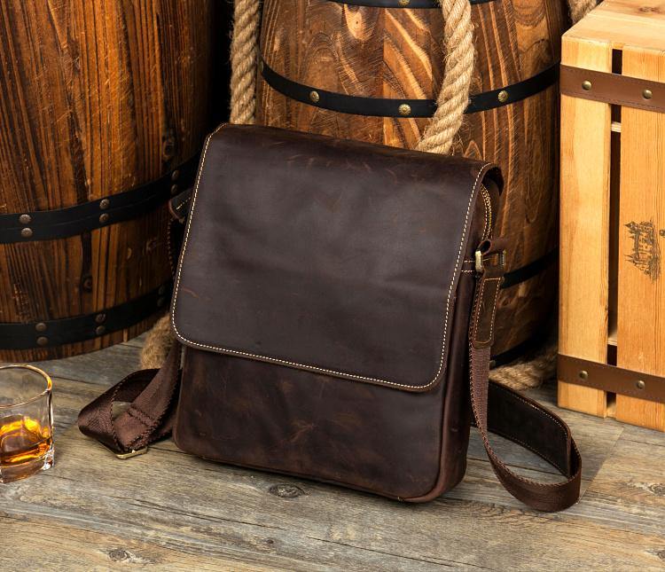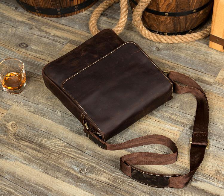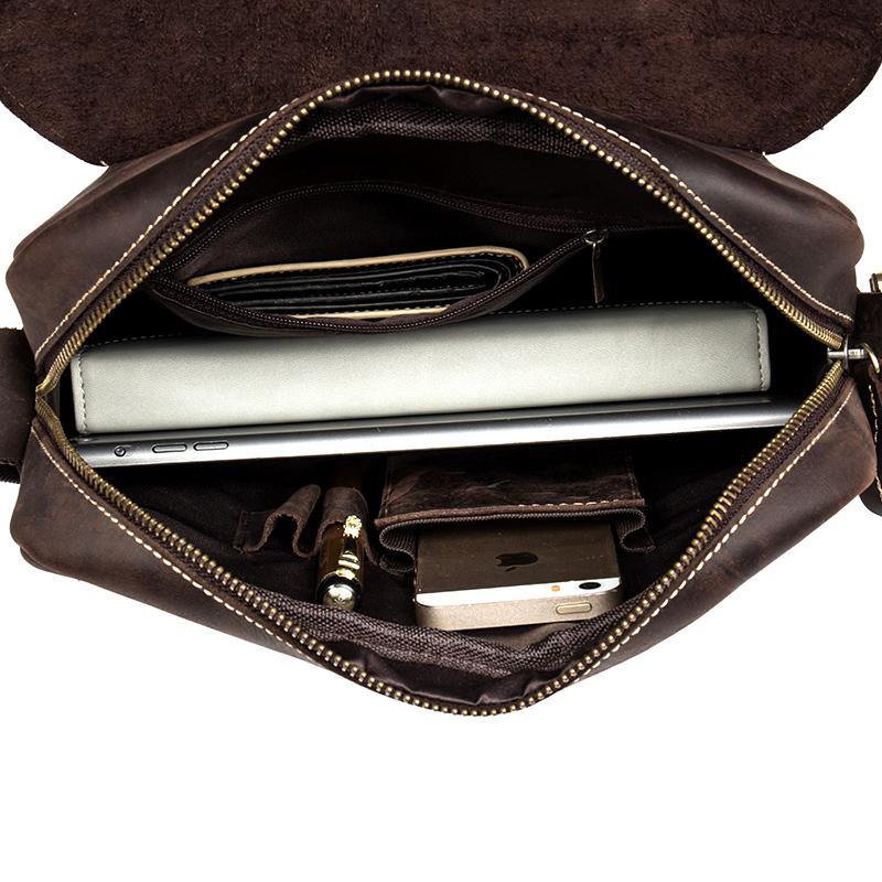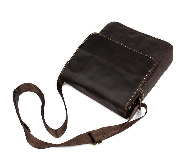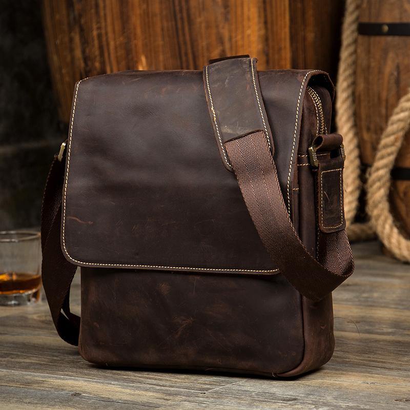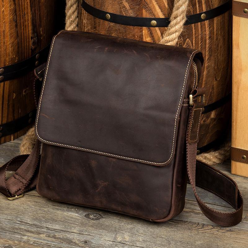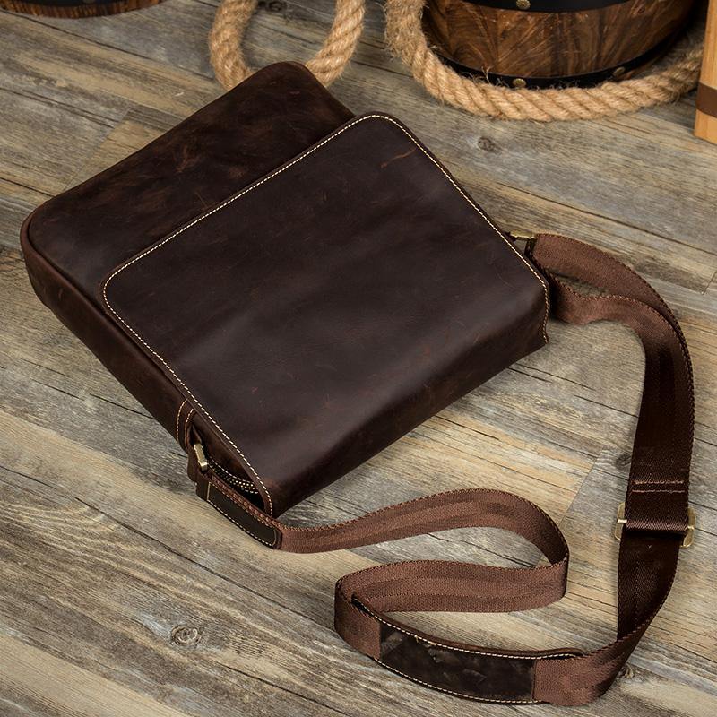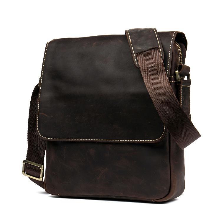 Design: Dark Brown Cool Leather 10 inches Shoulder Bags Messenger Bags Crossbody Bag for Men