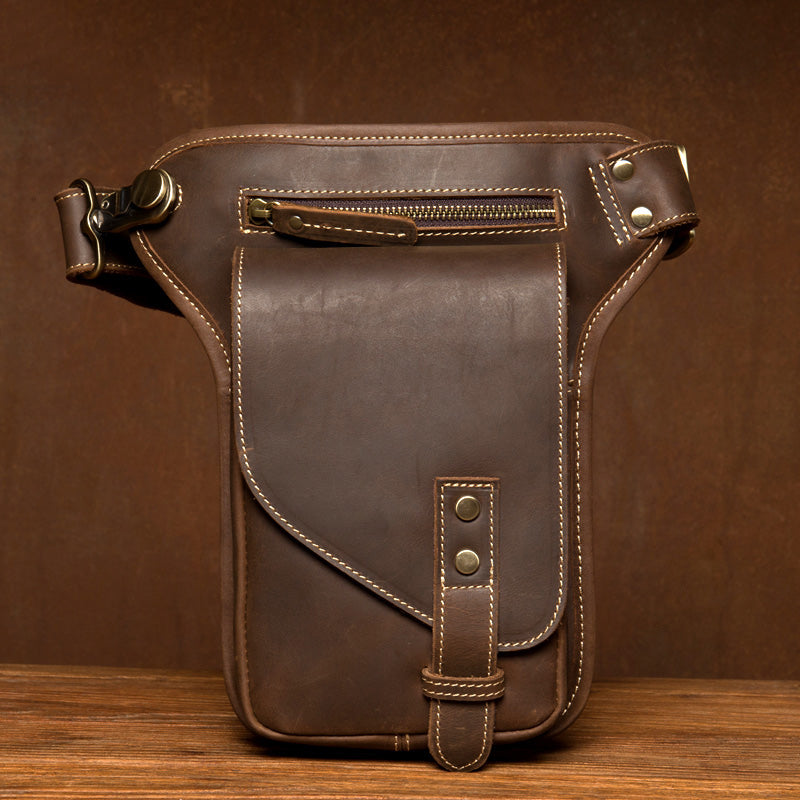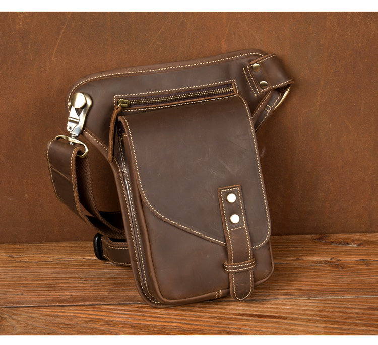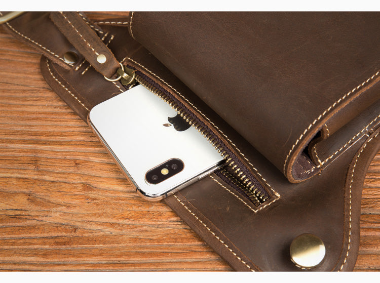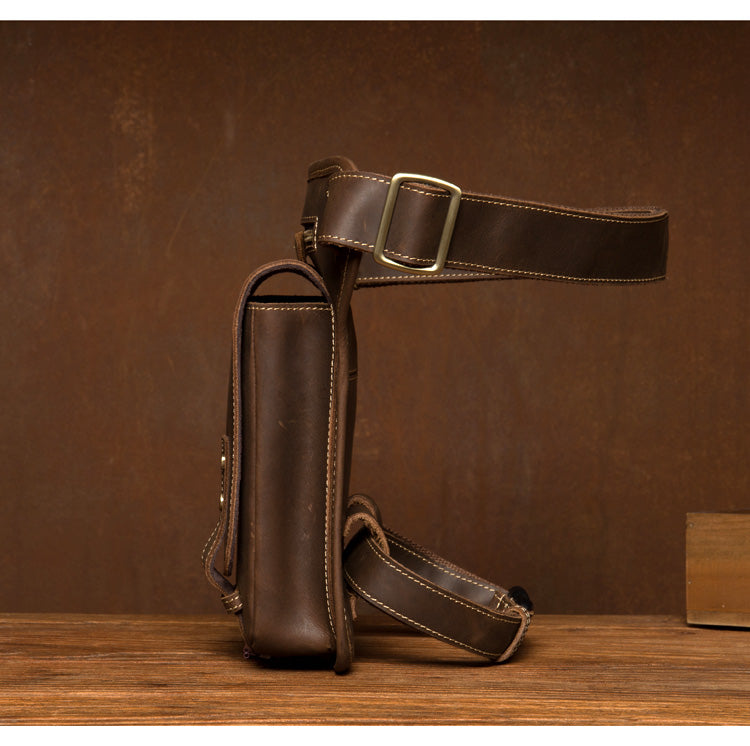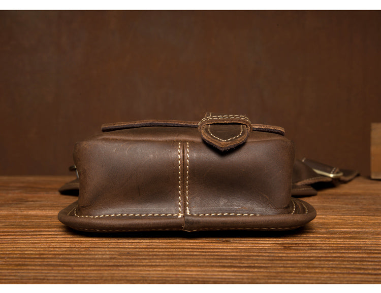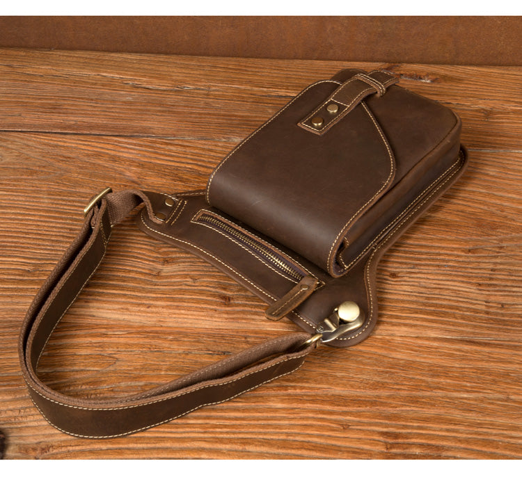 Cool Dark Brown Leather Small Side Bag Waist Bag Messenger Bags Fanny Pack for Men