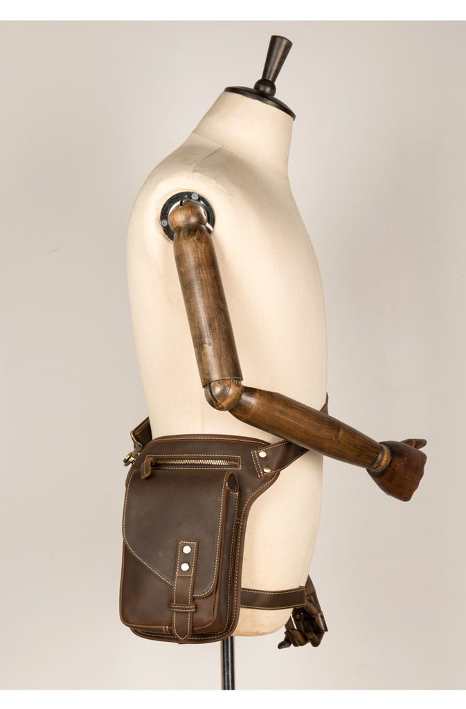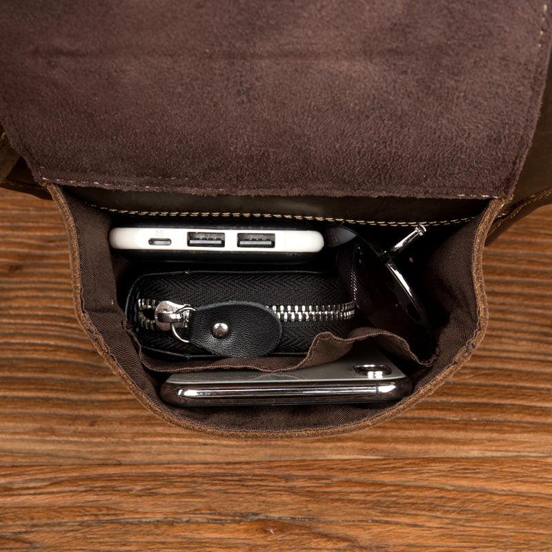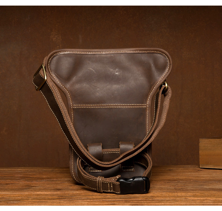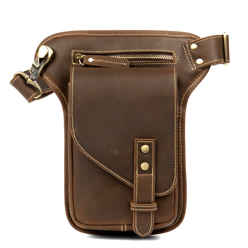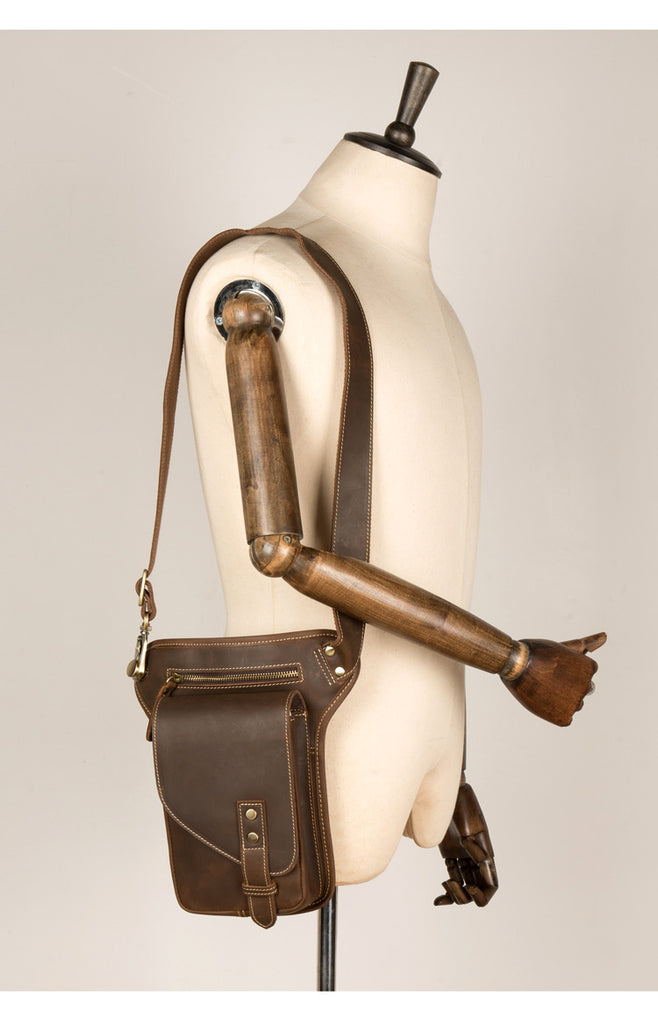 Cool Dark Brown Leather Small Side Bag Waist Bag Messenger Bags Fanny Pack for Men