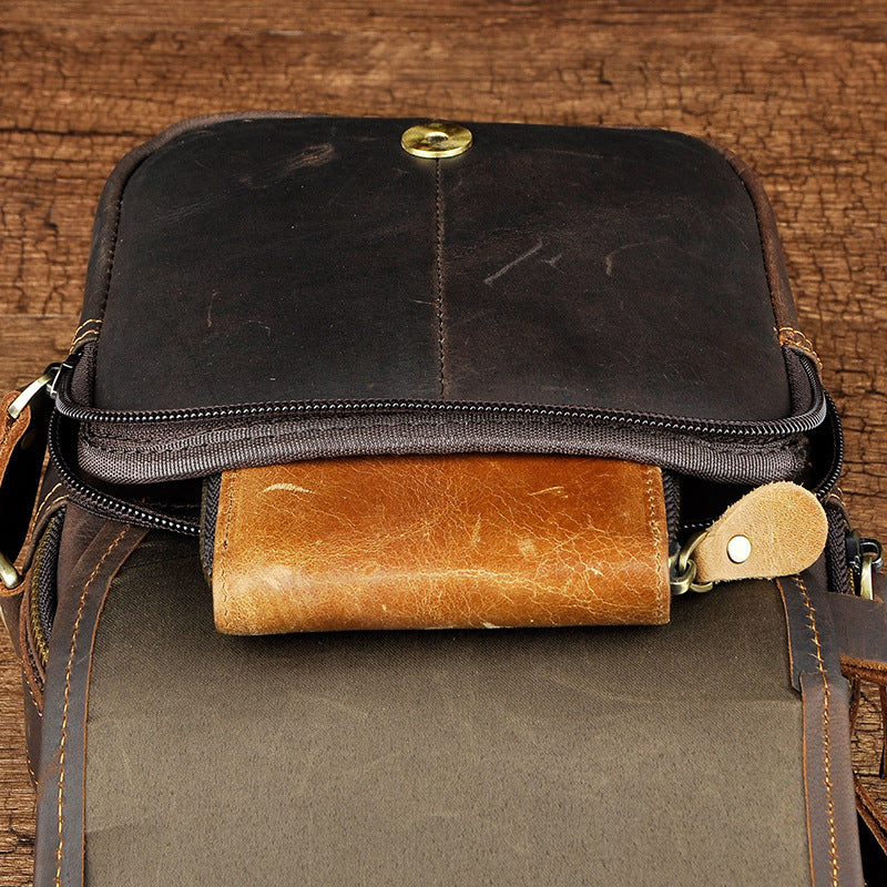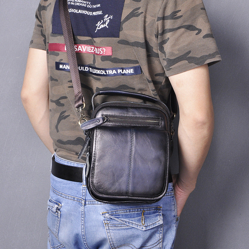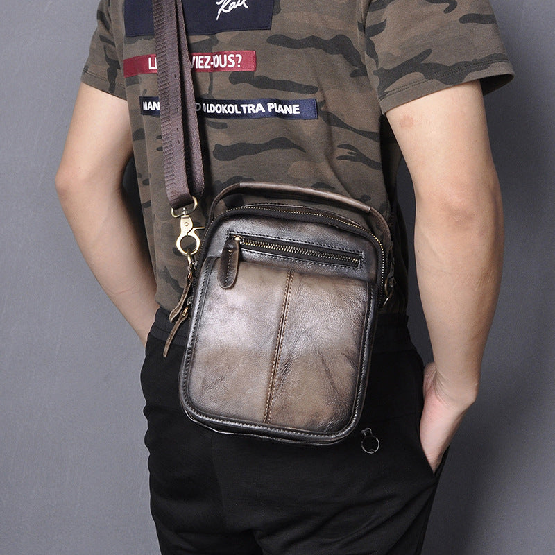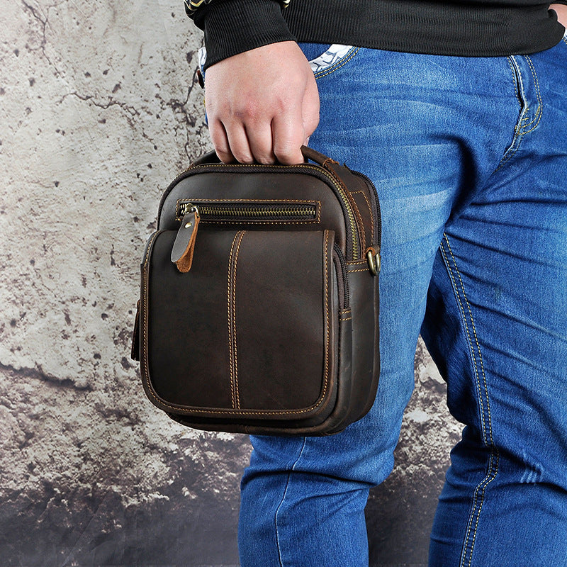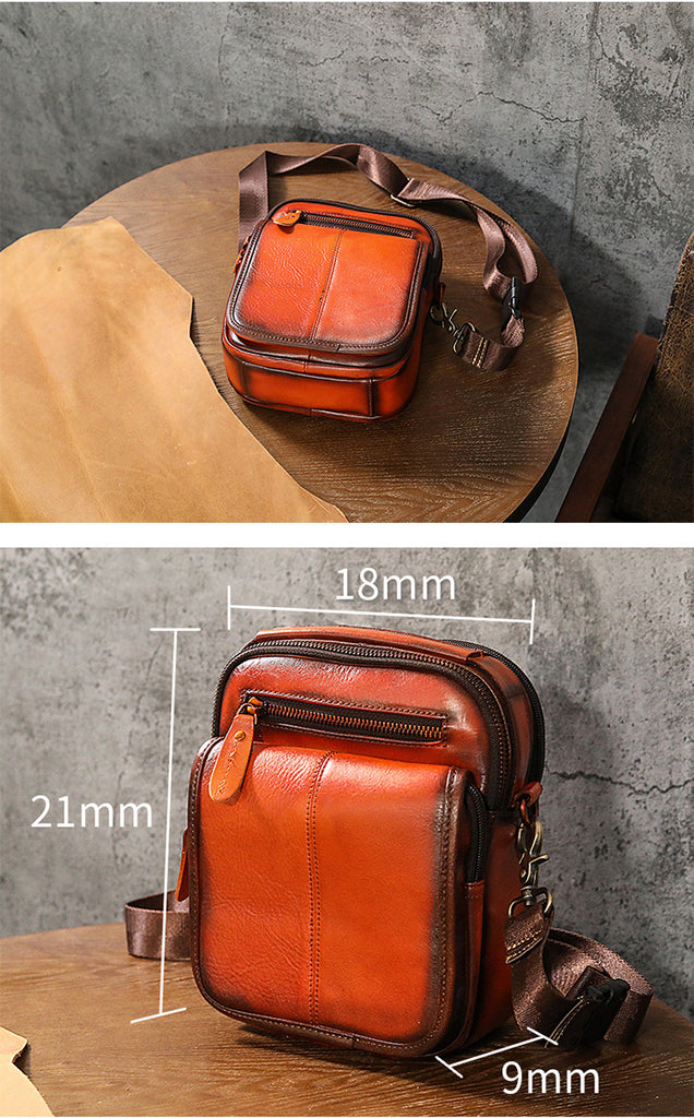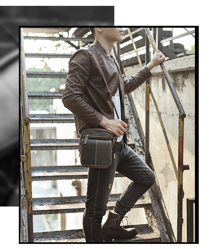 Design: Tan Cool Leather Men Small Side Bag Messenger Bag Shoulder Handbag Small Courier Bag for Men