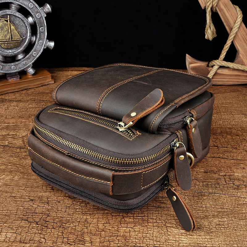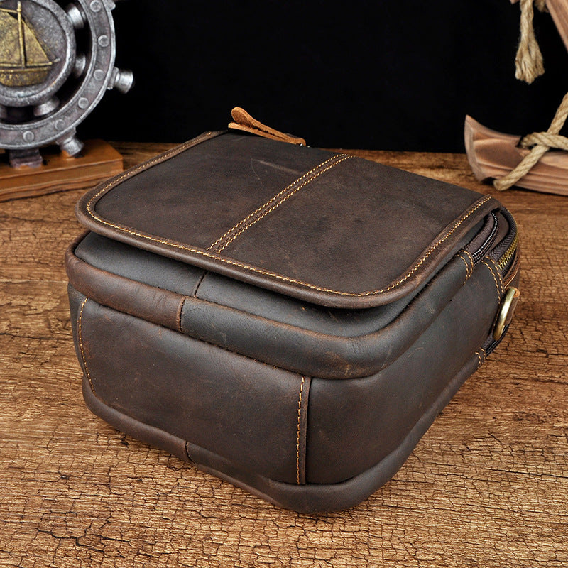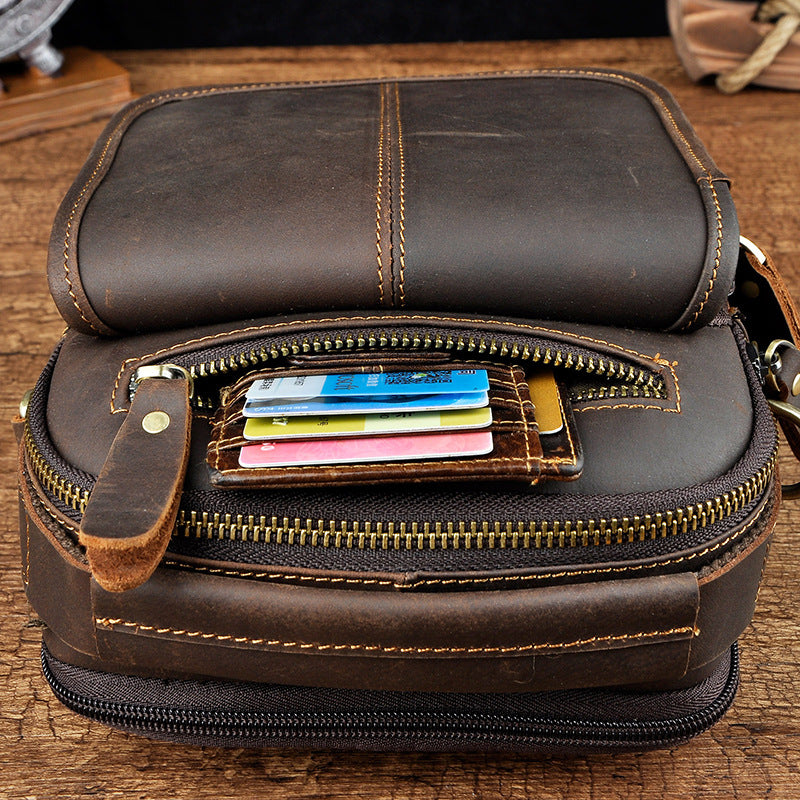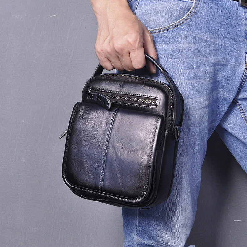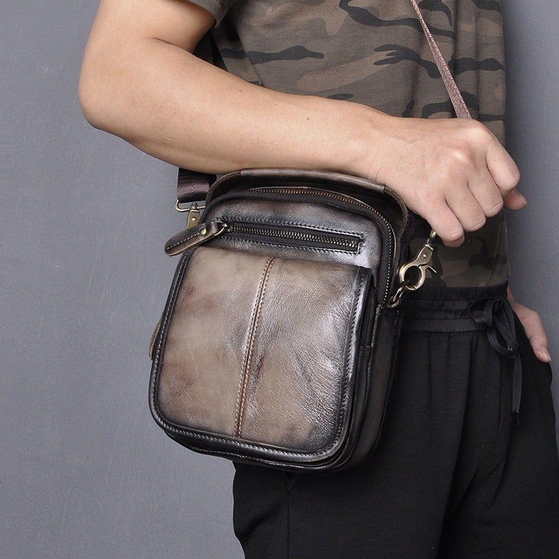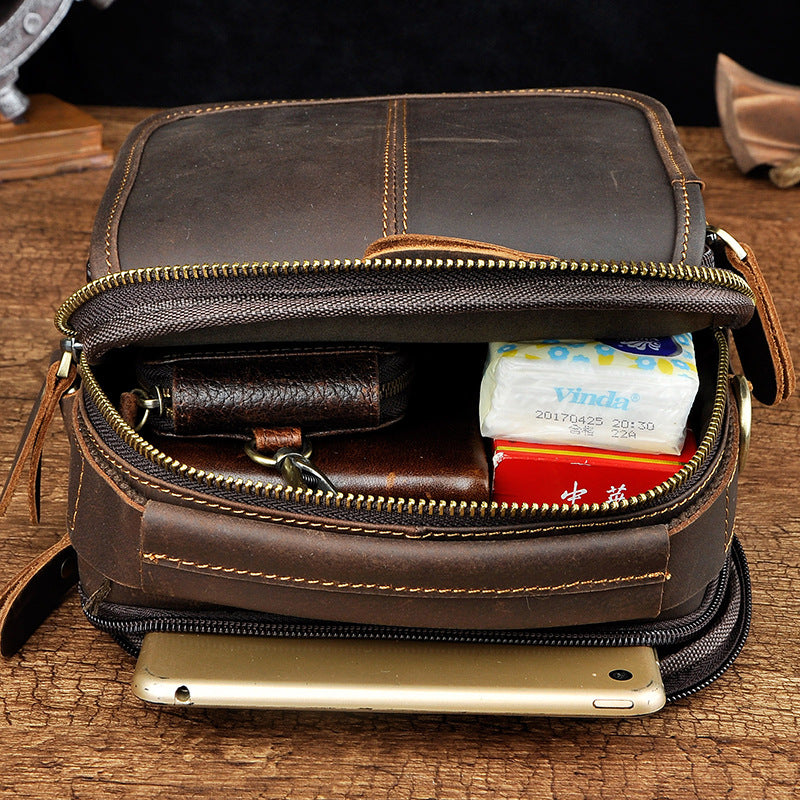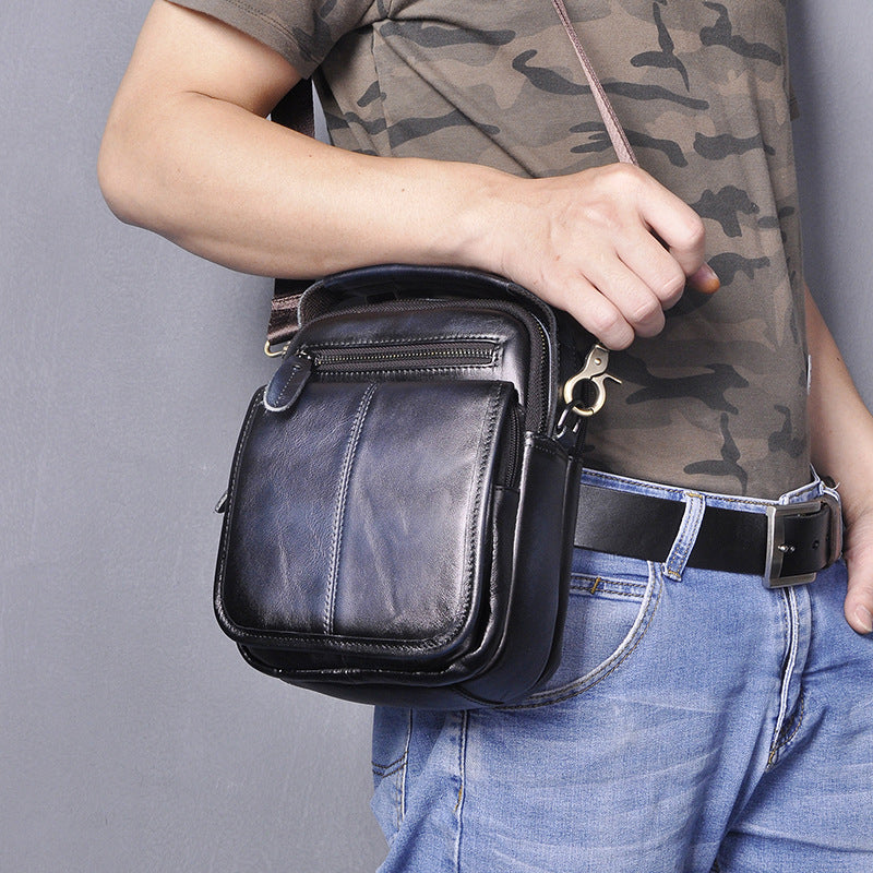 Design: Tan Cool Leather Men Small Side Bag Messenger Bag Shoulder Handbag Small Courier Bag for Men