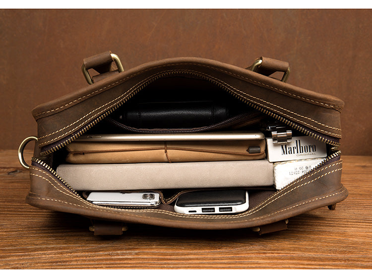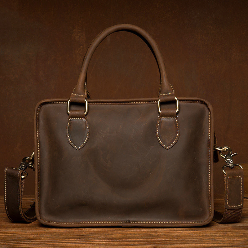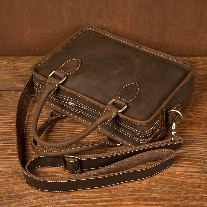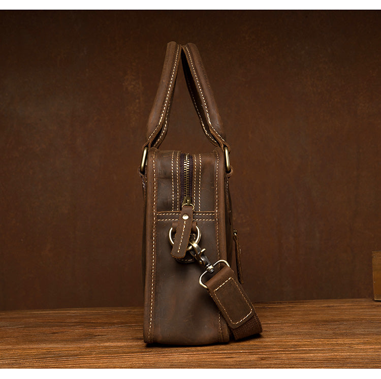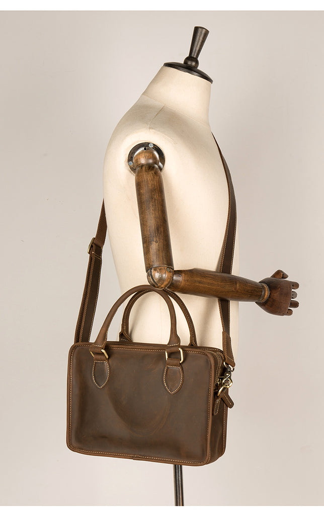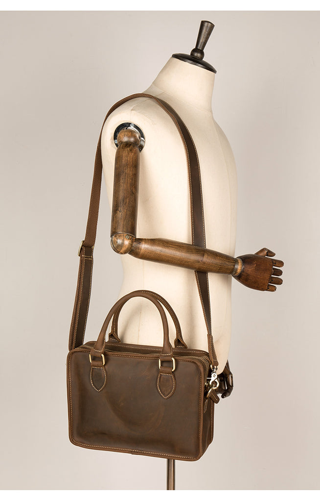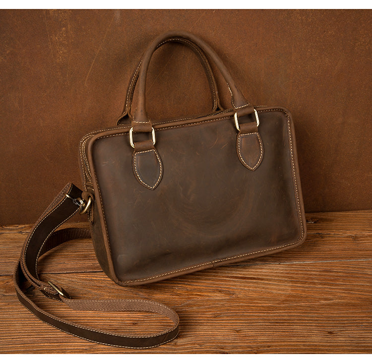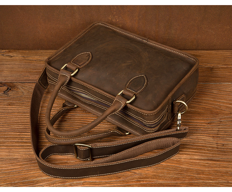 Style: Dark Brown Leather 10 inches Mens Small Messenger Bags Shoulder Bags for Men