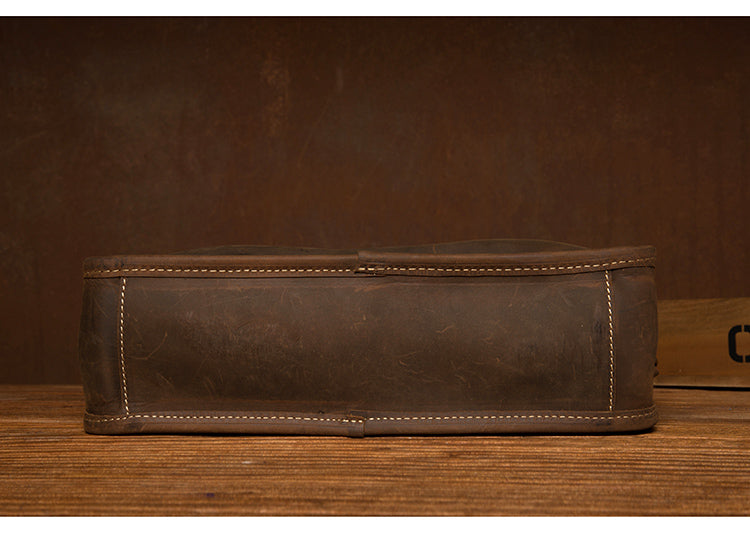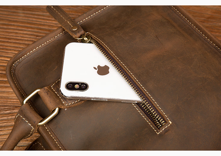Design: Dark Brown Leather 10 inches Mens Small Messenger Bags Shoulder Bags for Men