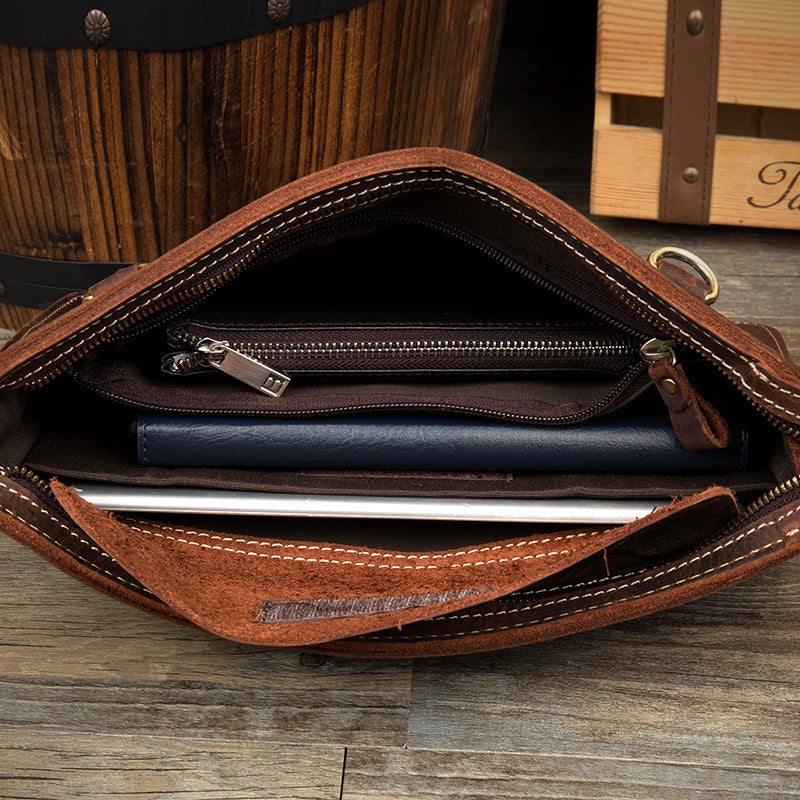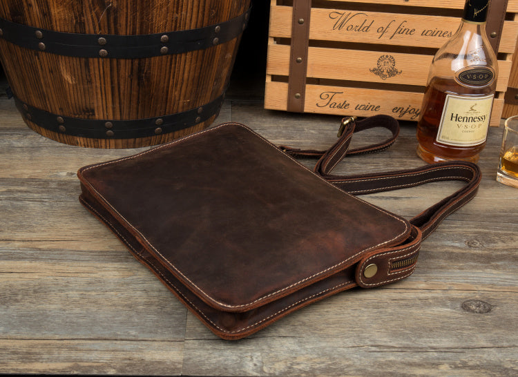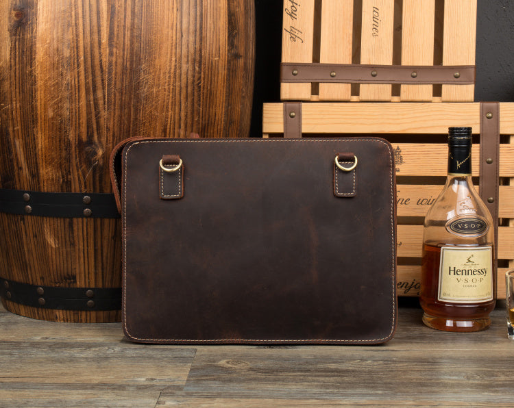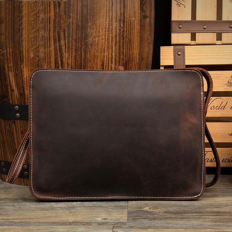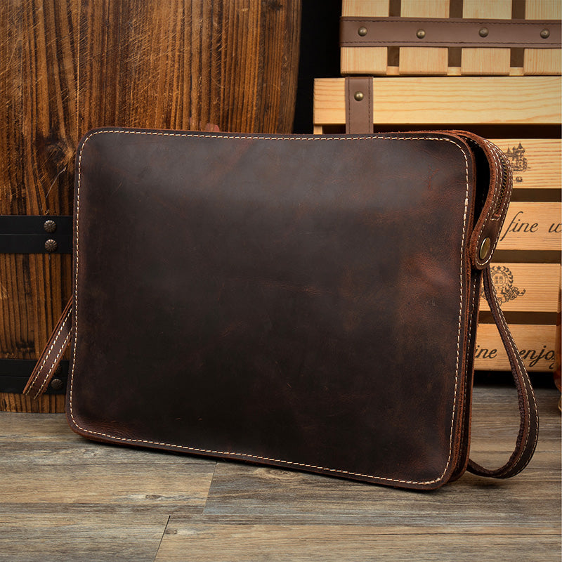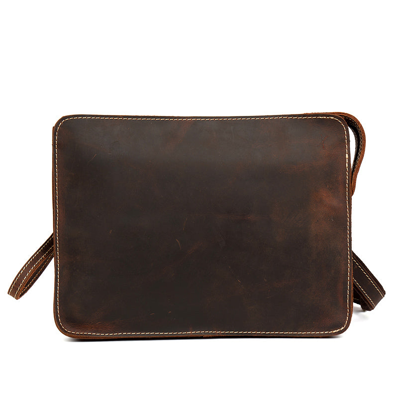 Design: Dark Brown Leather 11 inches Mens Casual Messenger Bags Shoulder Bags for Men