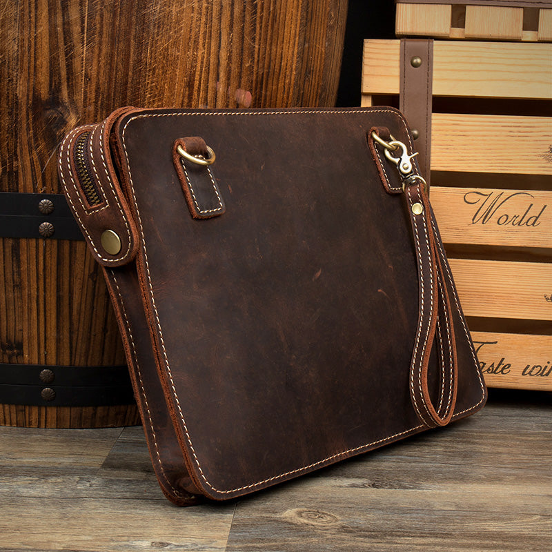 Cool Dark Brown Leather 11 inches Mens Courier Bag Casual Messenger Bags Clutch Postman Bags for Men