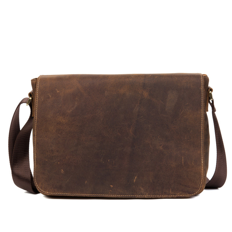 Design: Dark Brown Leather 15 inches Mens Messenger Bags Courier Bags Postman Bag for Men