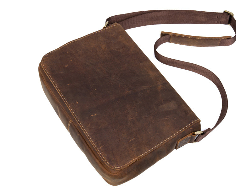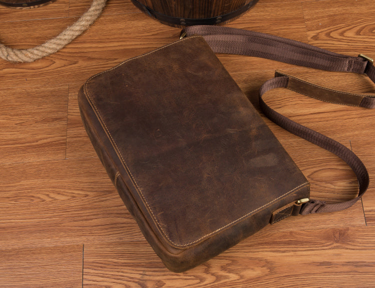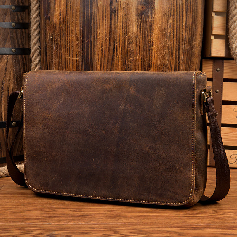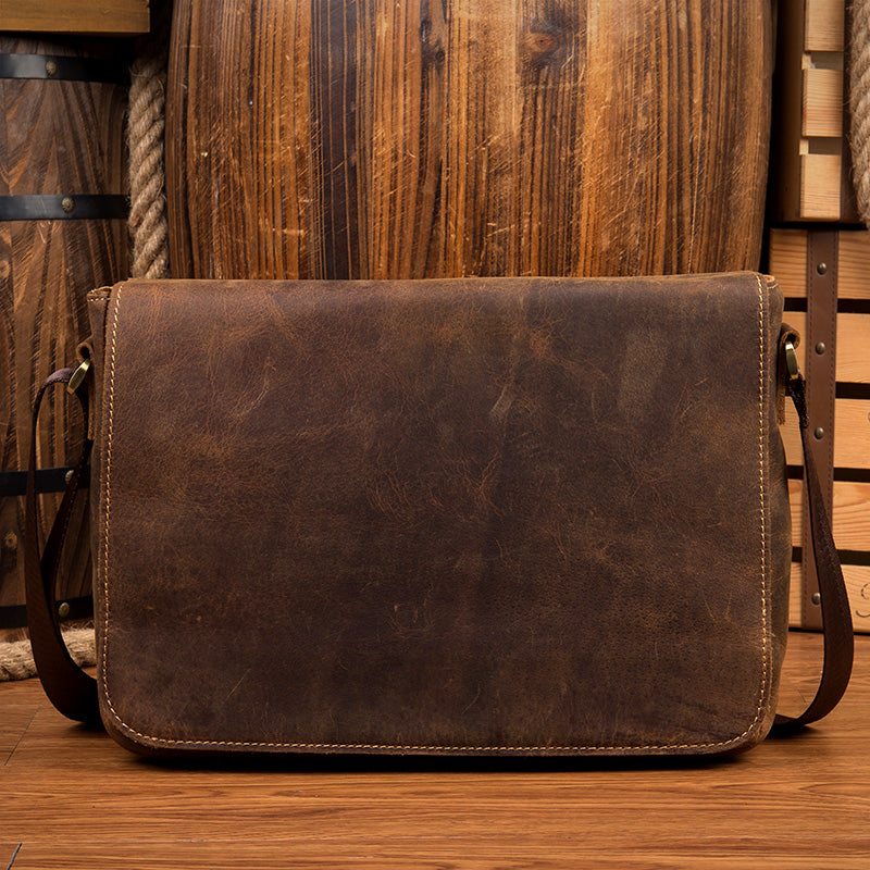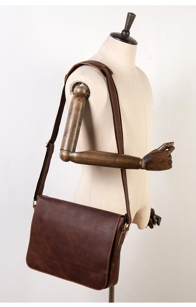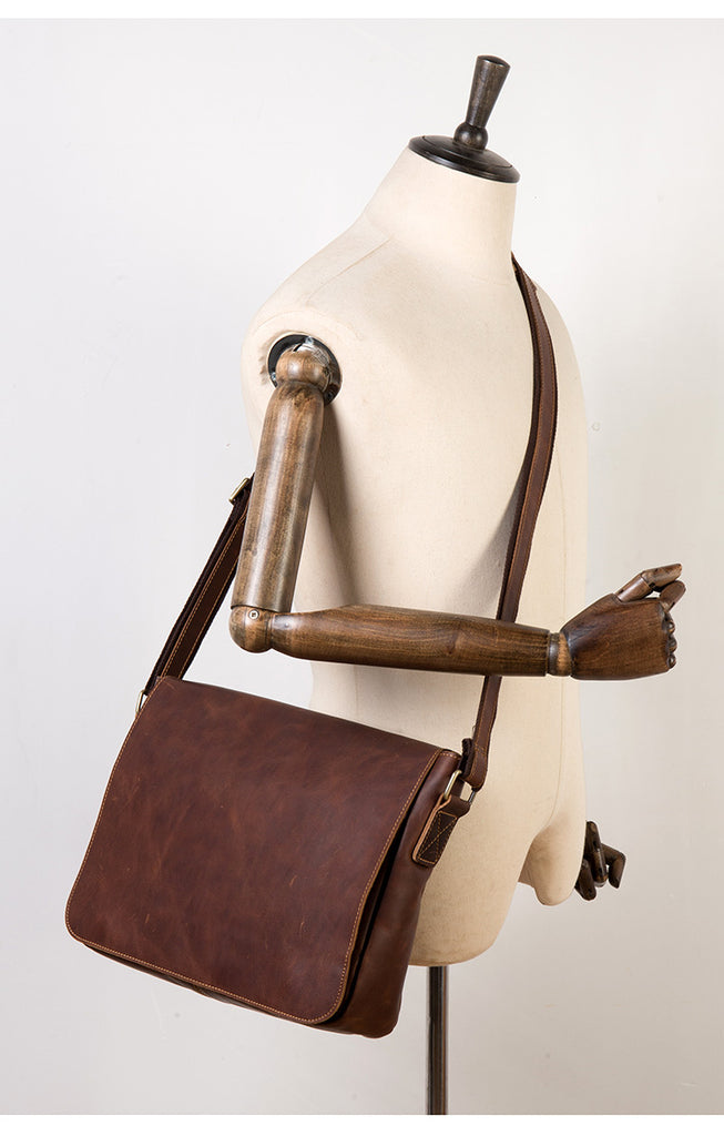 Dark Brown Leather 13 inches Mens Messenger Bags Courier Bags Postman Bag for Men