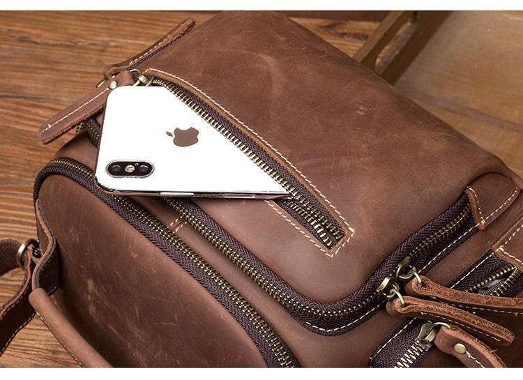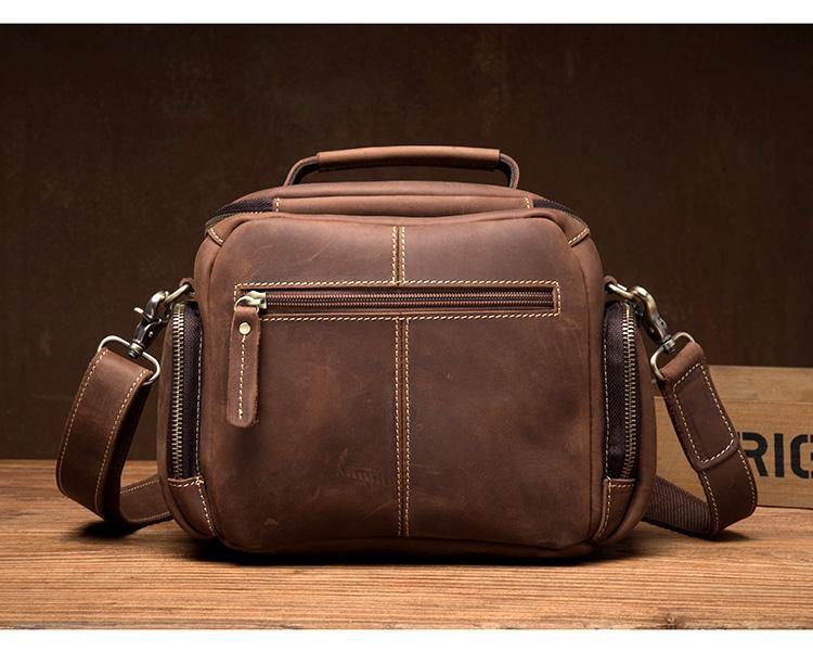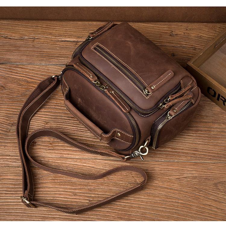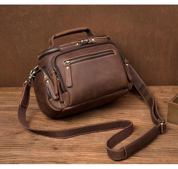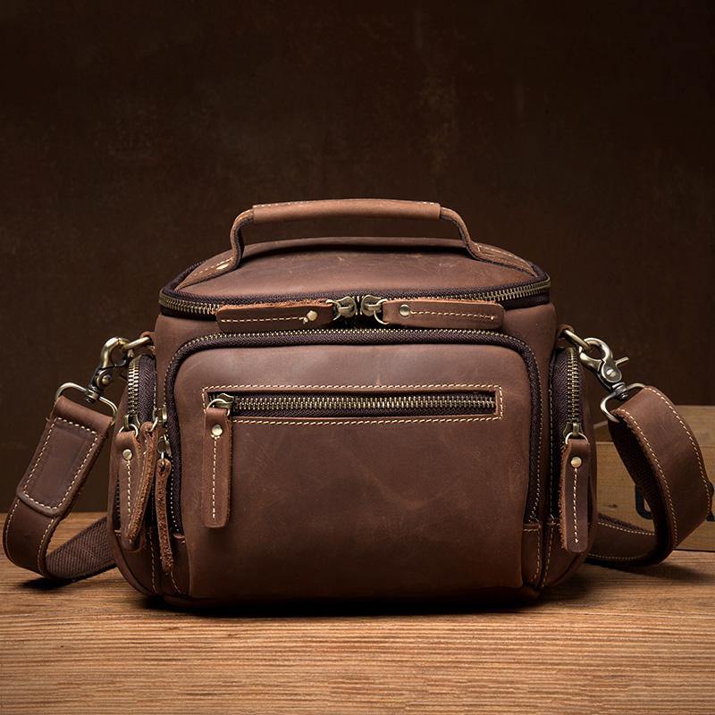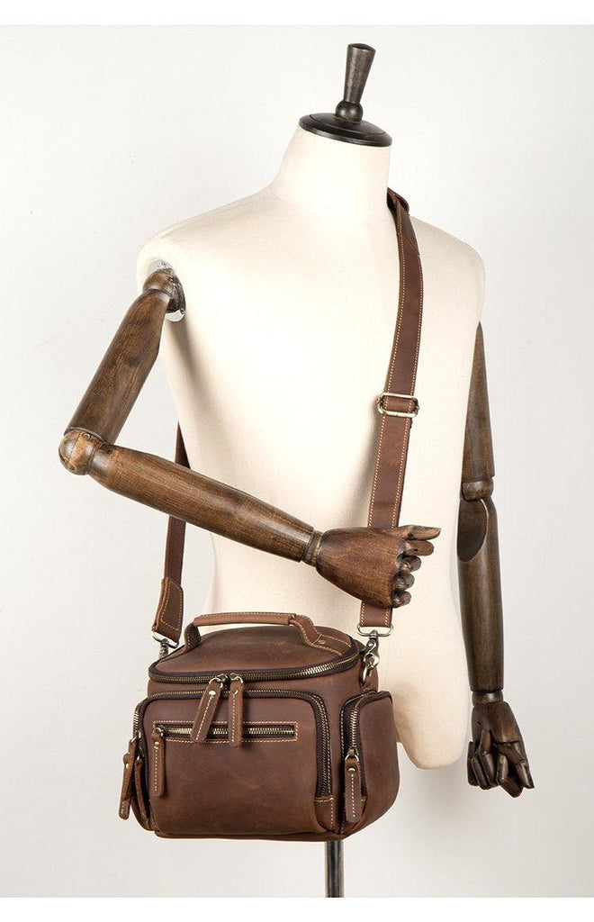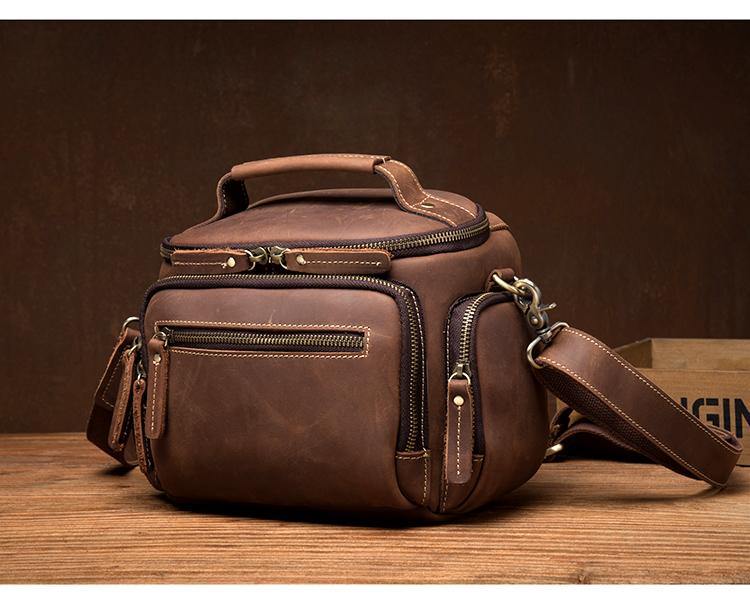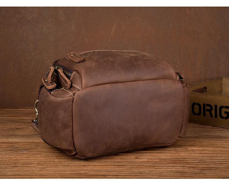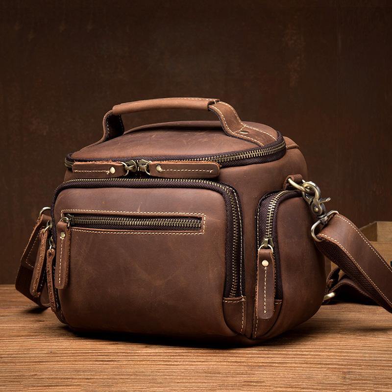 Vintage Dark Brown Leather Mens Camera Shoulder Bag Small Messenger Bag Courier Bag for Men