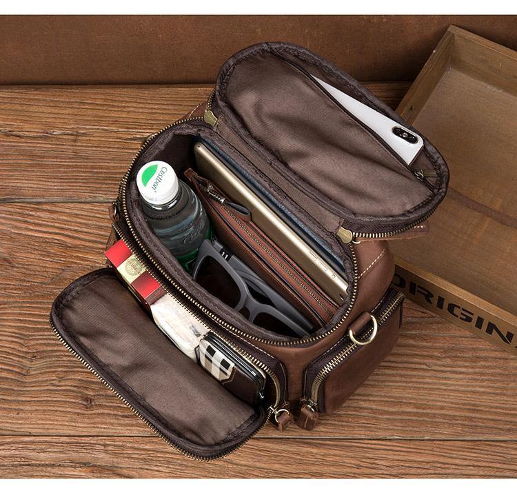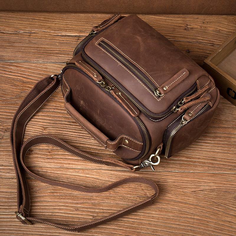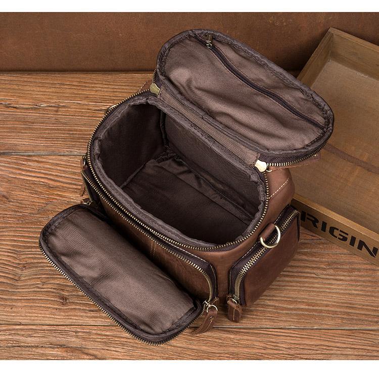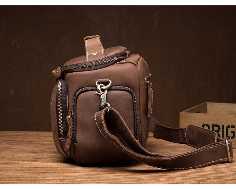 Style: Dark Brown Leather Mens Camera Bag Waist Bag Shoulder Bag for Men