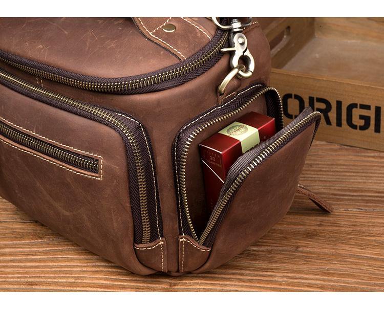 Design: Dark Brown Leather Mens Camera Bag Waist Bag Shoulder Bag for Men