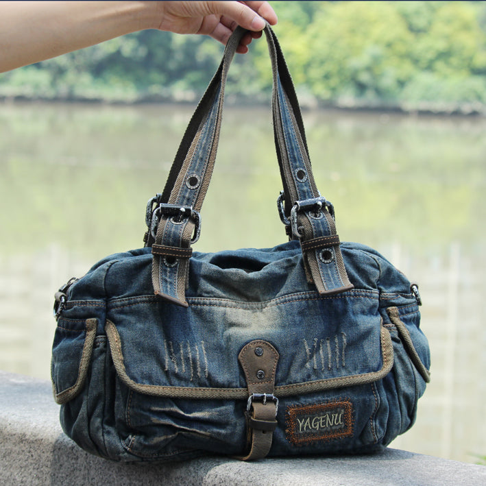 Design: Denim Blue Mens Womens Large Side Bag Handbag Blue Jean Messenger Bag For Men