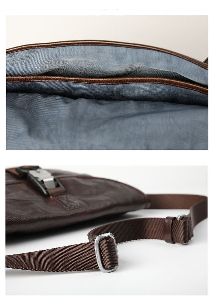 Design: DISTRESSED BROWN LEATHER MEN'S SLING BAG 10 inches ONE SHOULDER MESSENGER BAG CHEST BAG CROSSBODY BAG FOR MEN