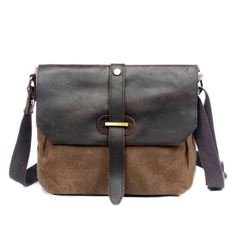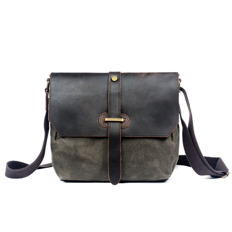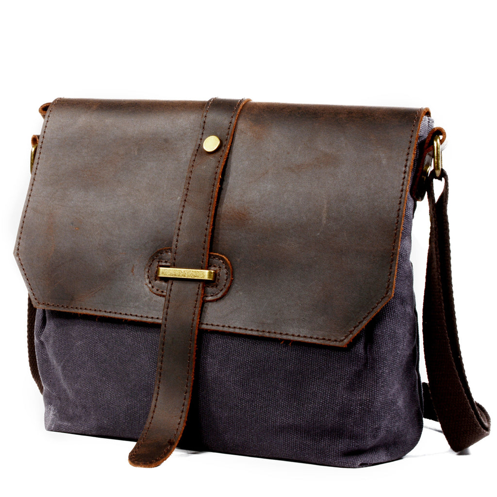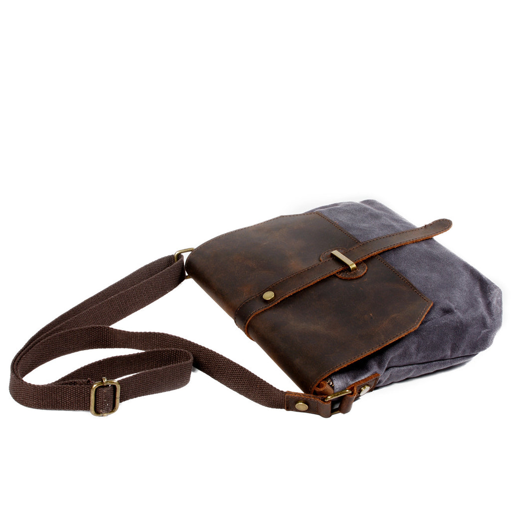 Design: Gray Leather Canvas Shoulder Bag Mens Cycling Gray Canvas Small Messenger Bag For Men