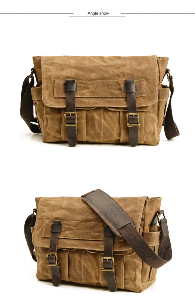 Style: Gray Waxed Canvas SLR Camera Messenger Bag Mens Cycling Gray Camera Messenger Bag For Men