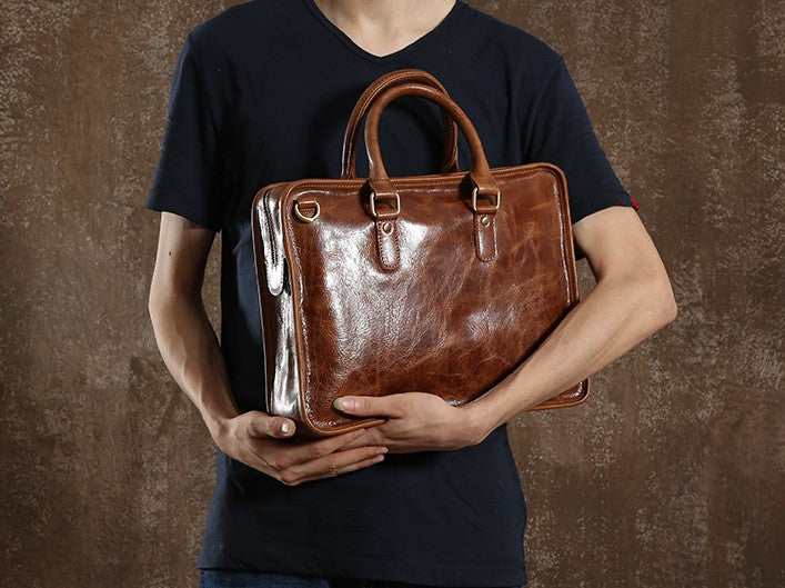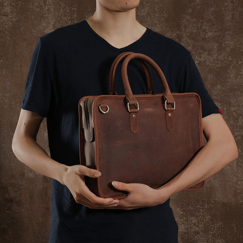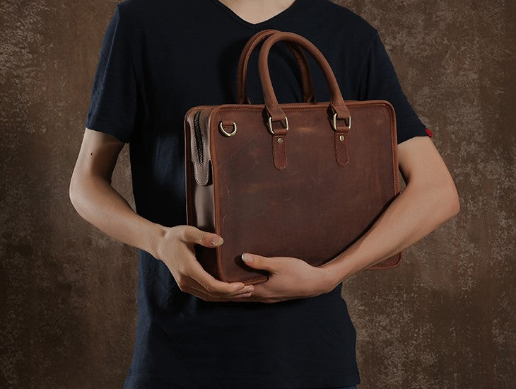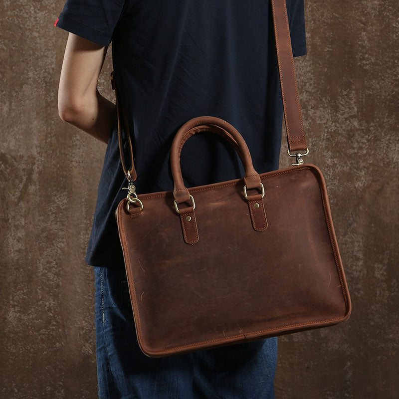 Style: Handmade Leather Mens Cool Messenger Bag Briefcase Work Bag Business Bag Laptop Bag for men