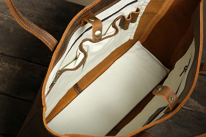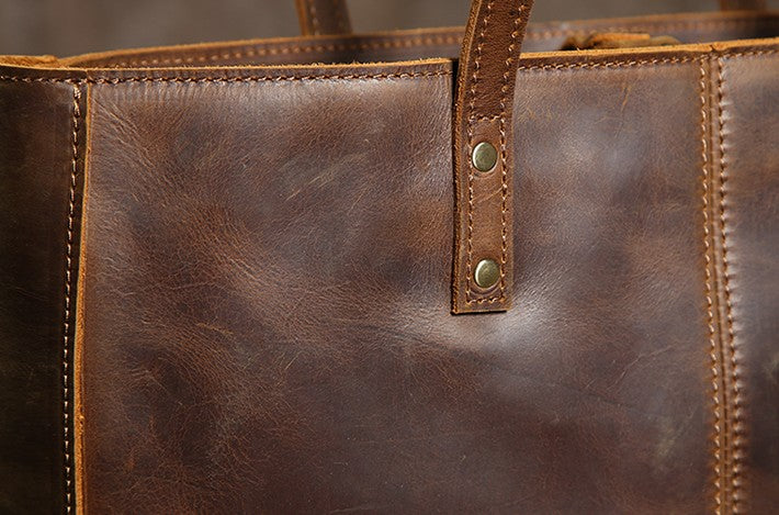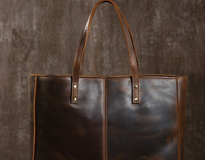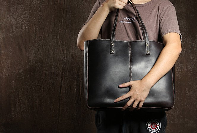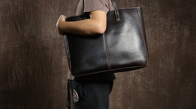 Design: Handmade Leather Mens Tote Bag Cool Handbag Shoulder Bag Work Bag Laptop Bag for Men