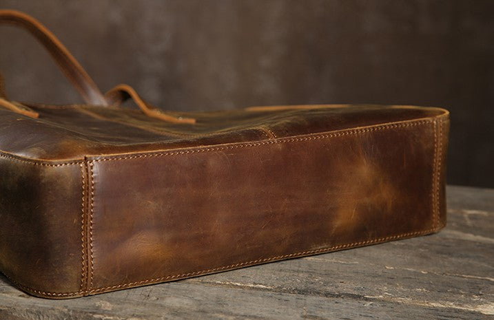 Style: Handmade Leather Mens Tote Bag Cool Handbag Shoulder Bag Work Bag Laptop Bag for Men