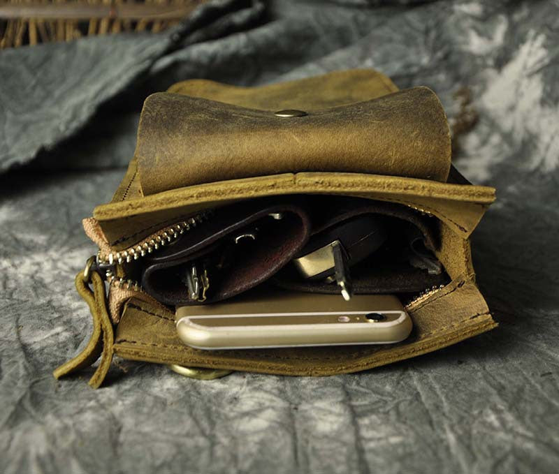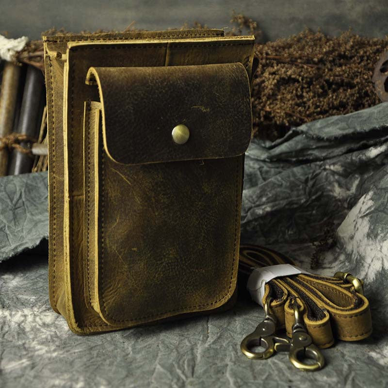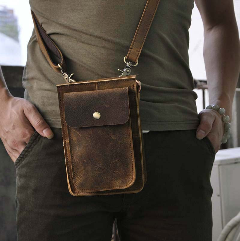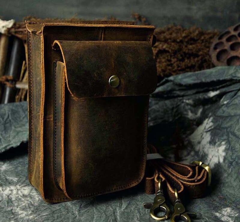 Style: Handmade Leather Mens Waist Bag Hip Pack Belt Bag Fanny Pack Bumbag for Men
