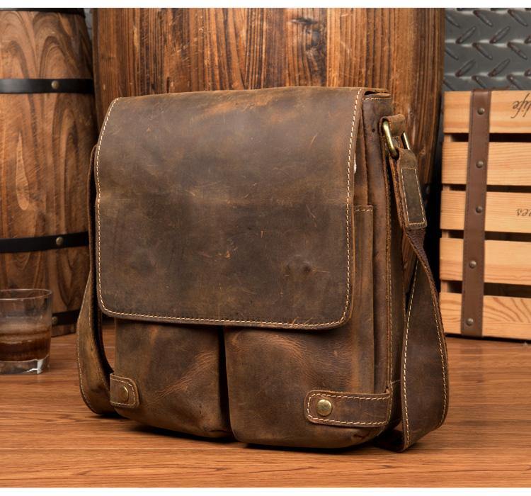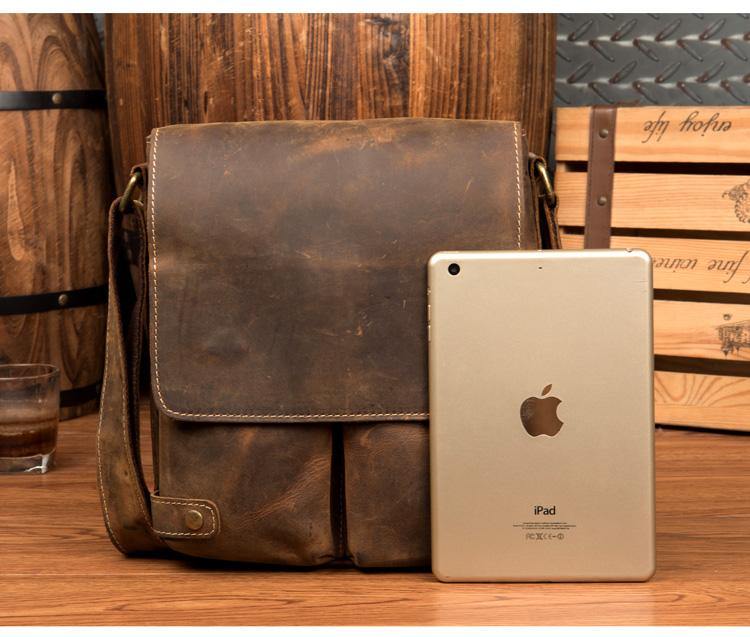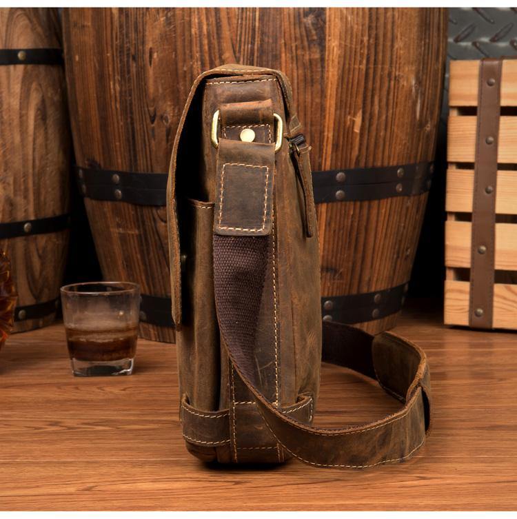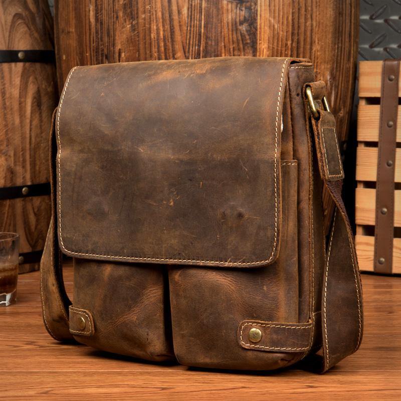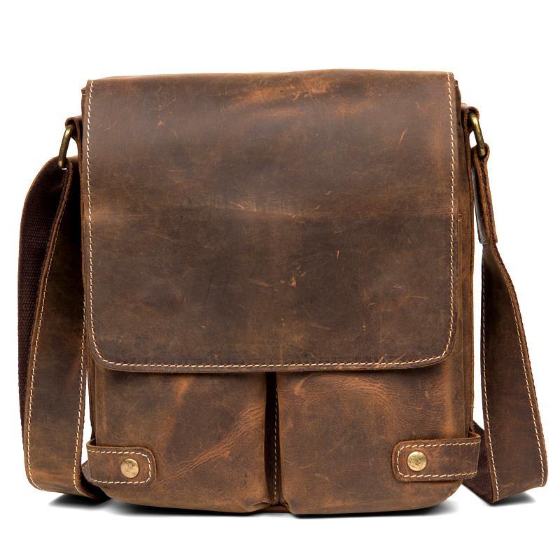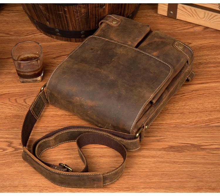 Design: Light Brown Leather 10 inches Mens Small Messenger Bags Shoulder Bag for Men