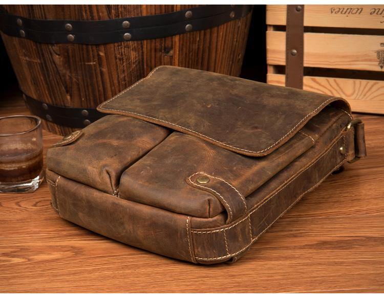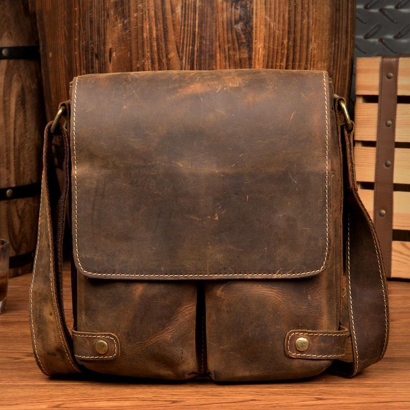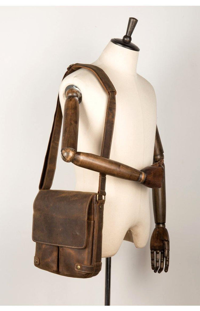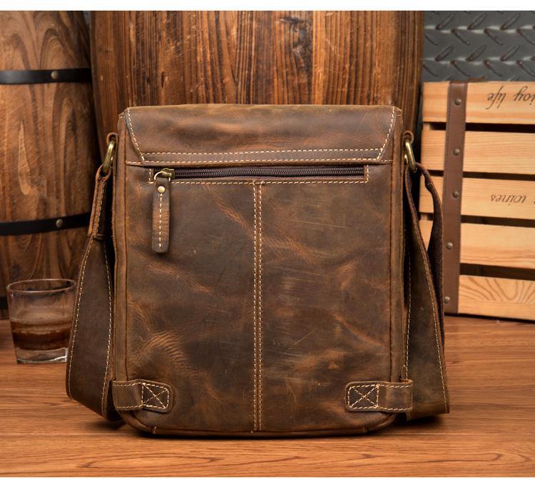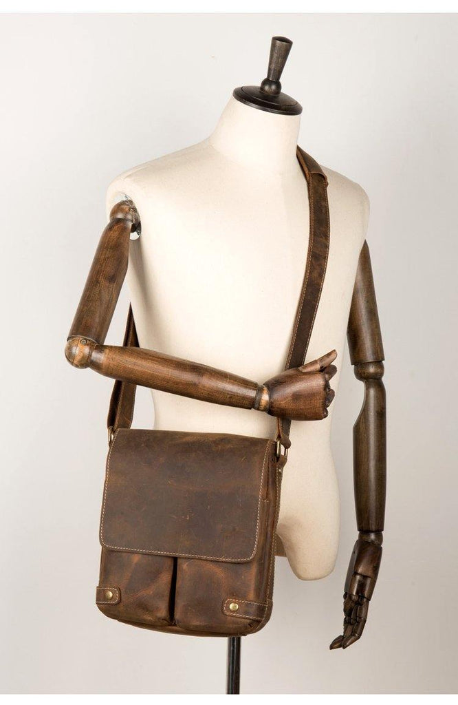 Design: Light Brown Leather 10 inches Mens Small Messenger Bags Shoulder Bag for Men