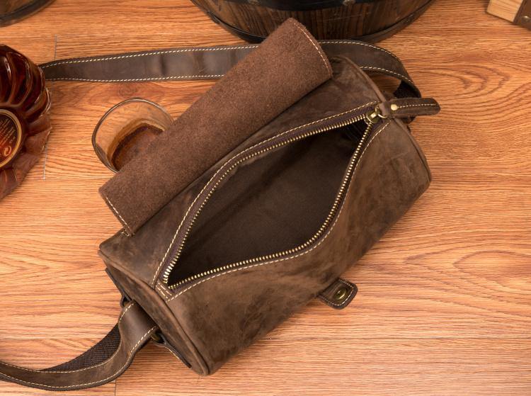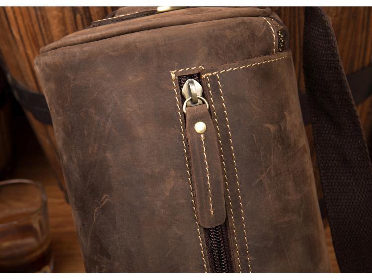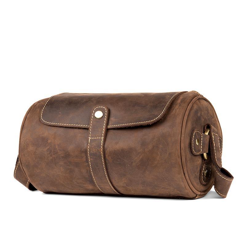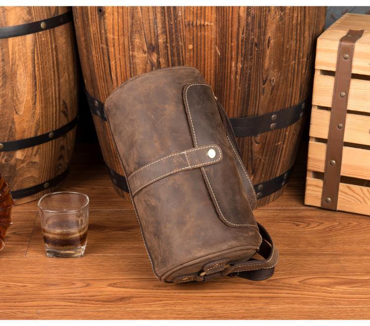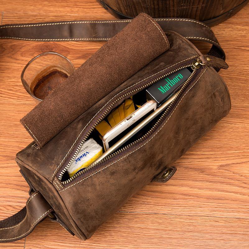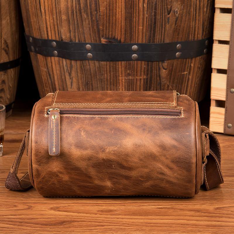 Cool Mens Brown Leather Small Barrel Messenger Bag Bucket Courier Bags for Men