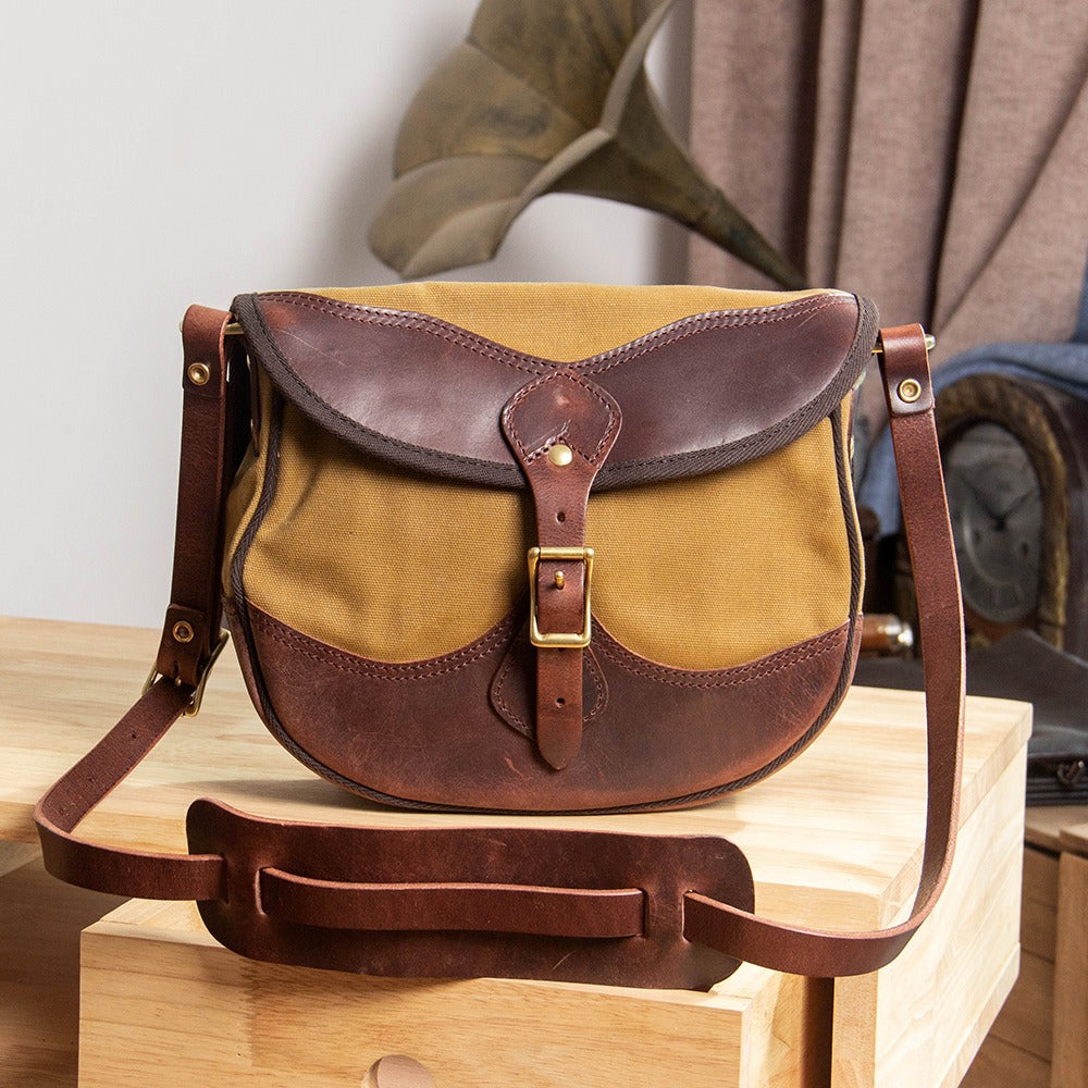 Mens Khaki Canvas Leather Saddle Side Bag Saddle Canvas Messenger Bag For Men