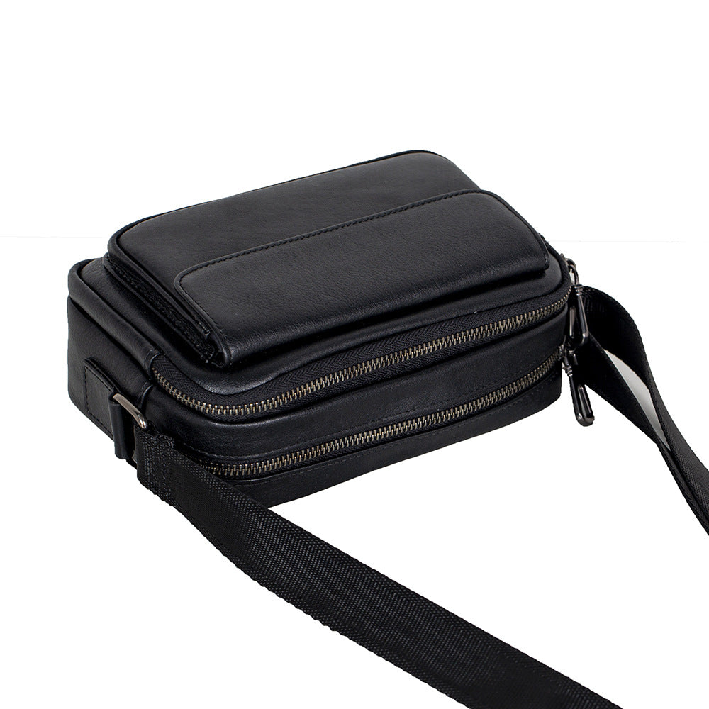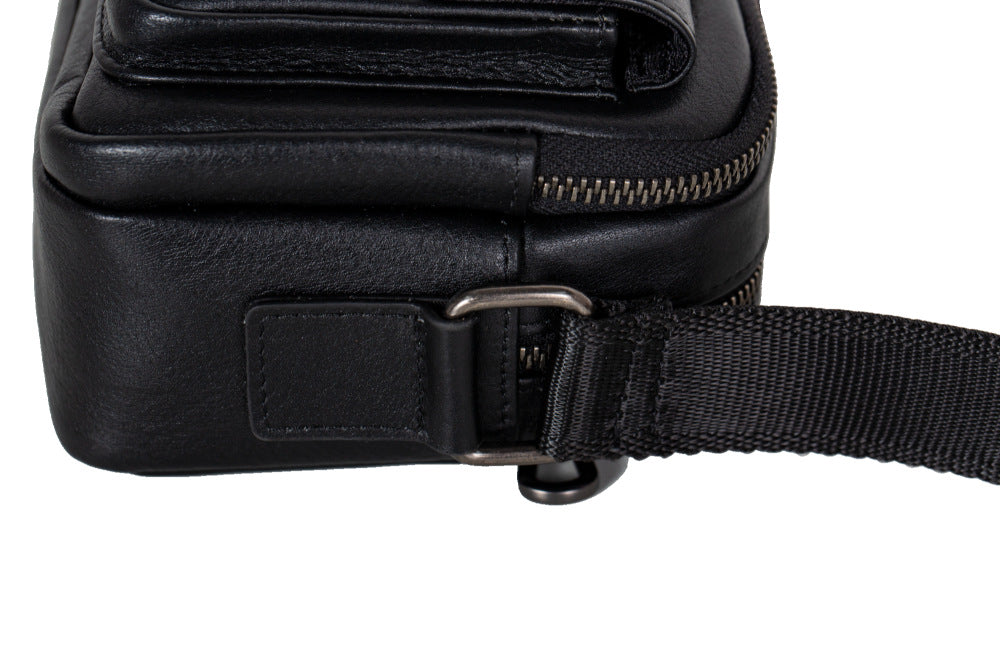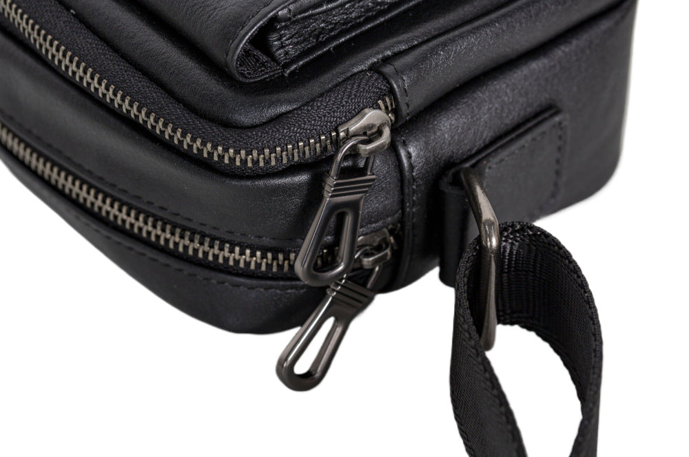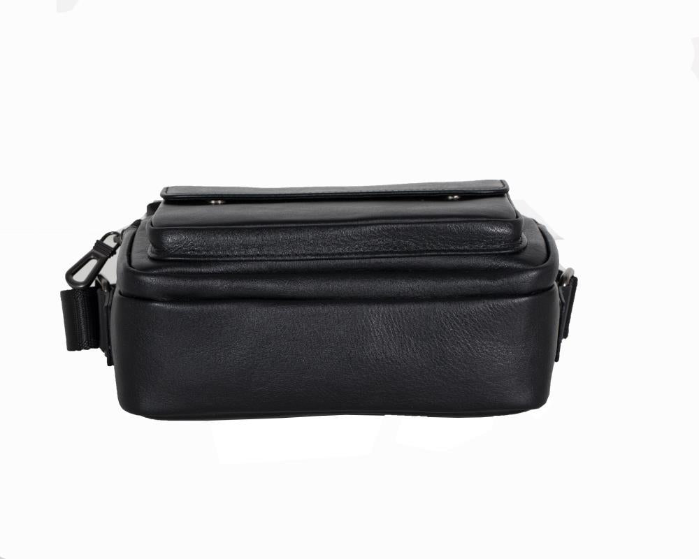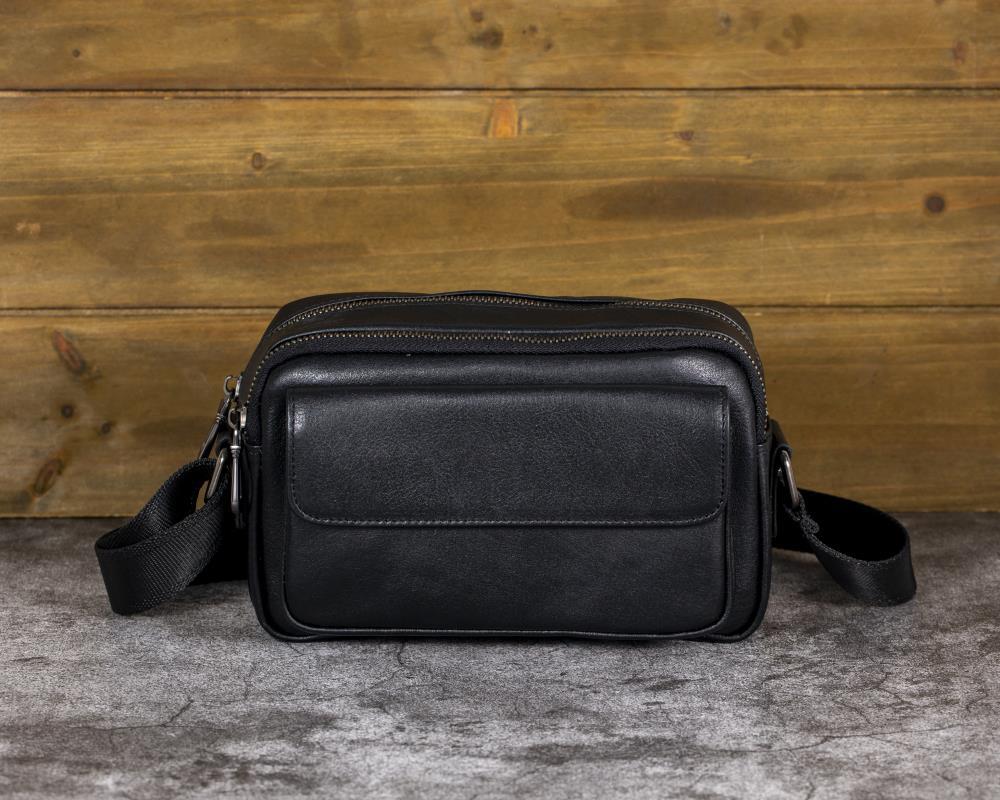 Mens Black Leather Crossbody Bag | Compact & Secure Everyday Carry Bag
