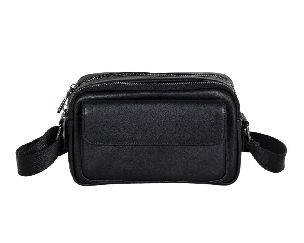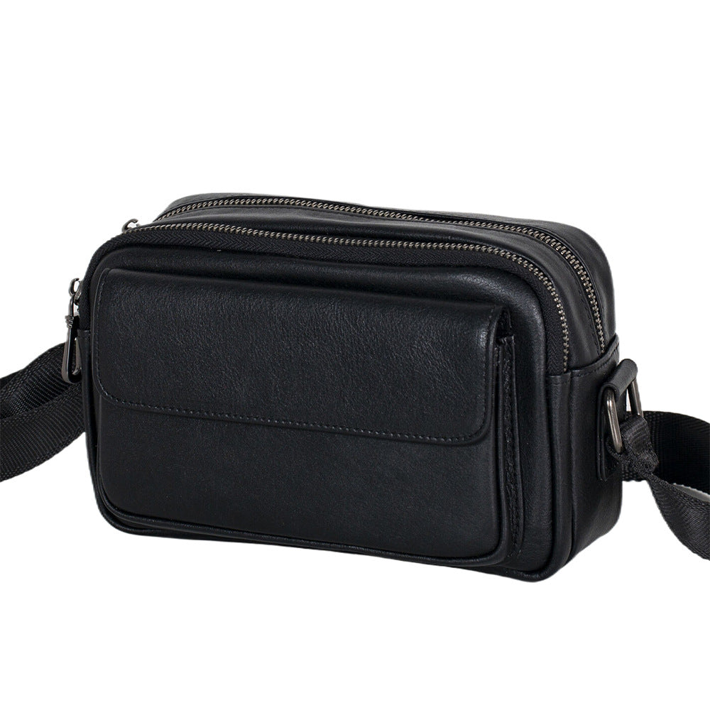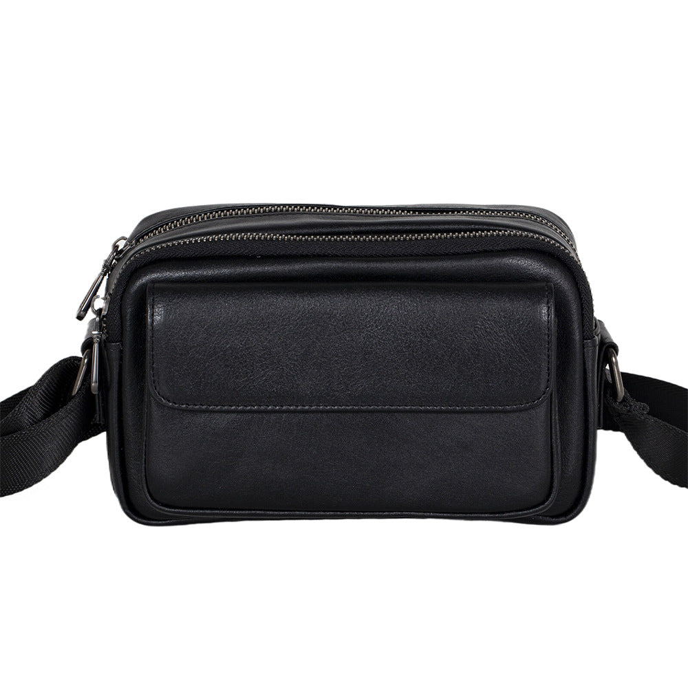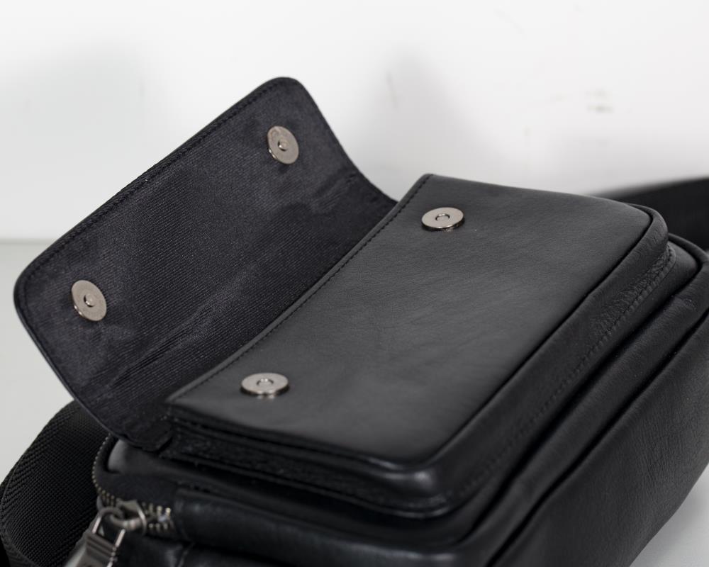 Mens Black Leather Crossbody Bag | Compact & Secure Everyday Carry Bag
