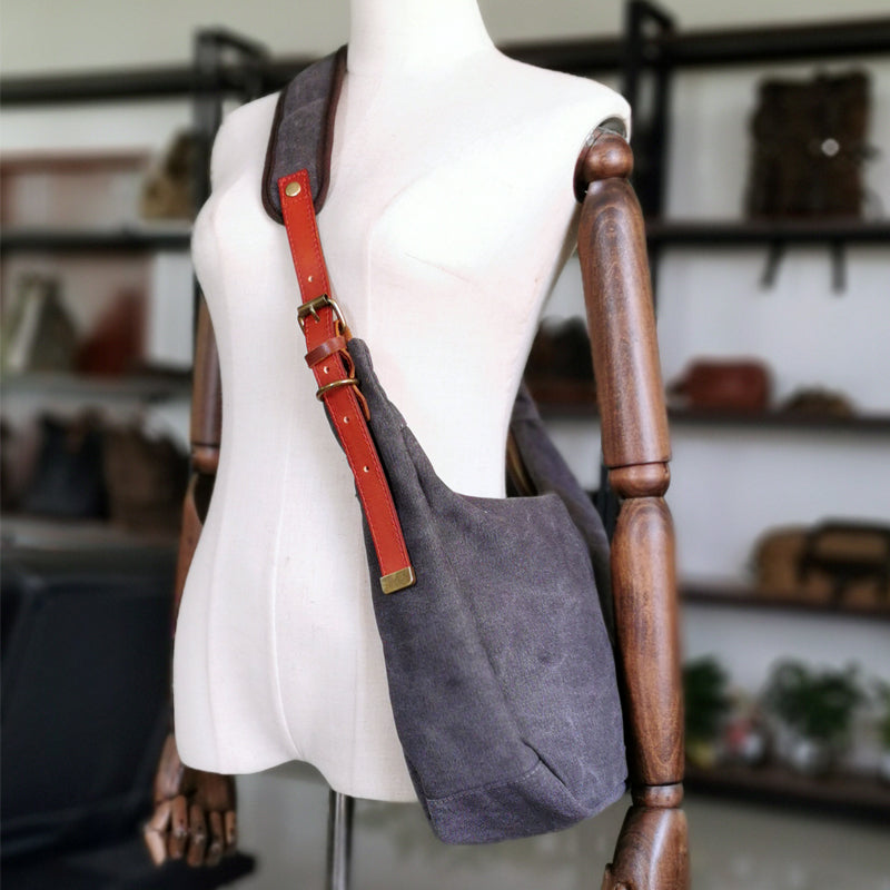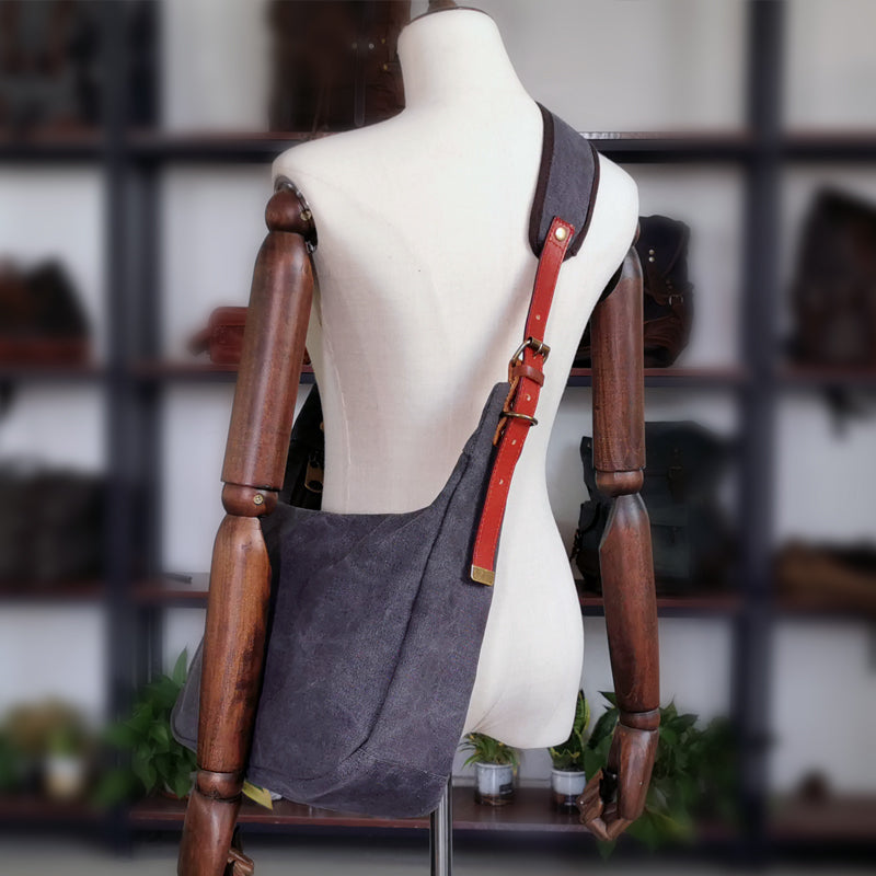 Design: Mens Waxed Canvas Side Bag Gray Waterproof Messenger Bag Canvas Courier Bag for Men