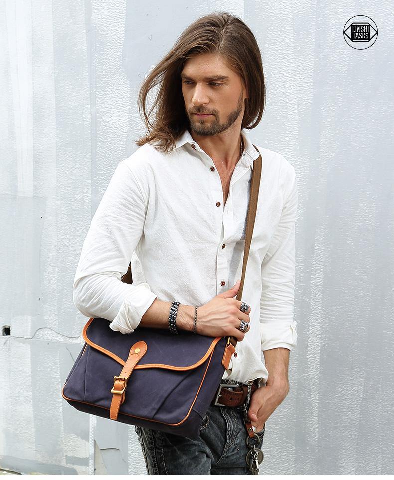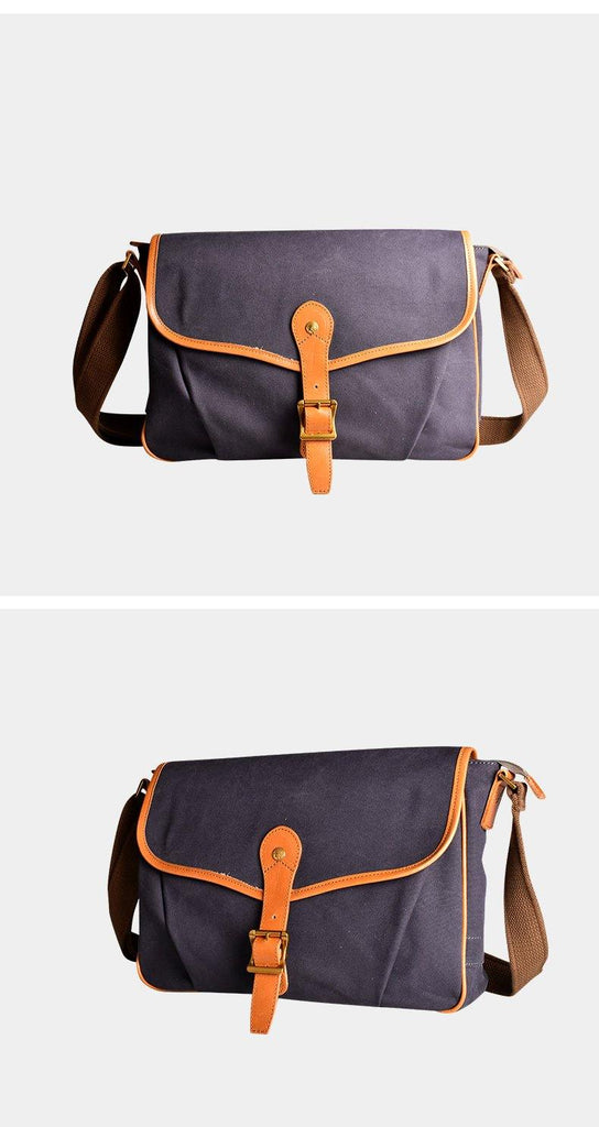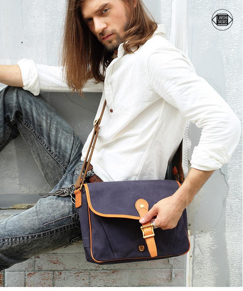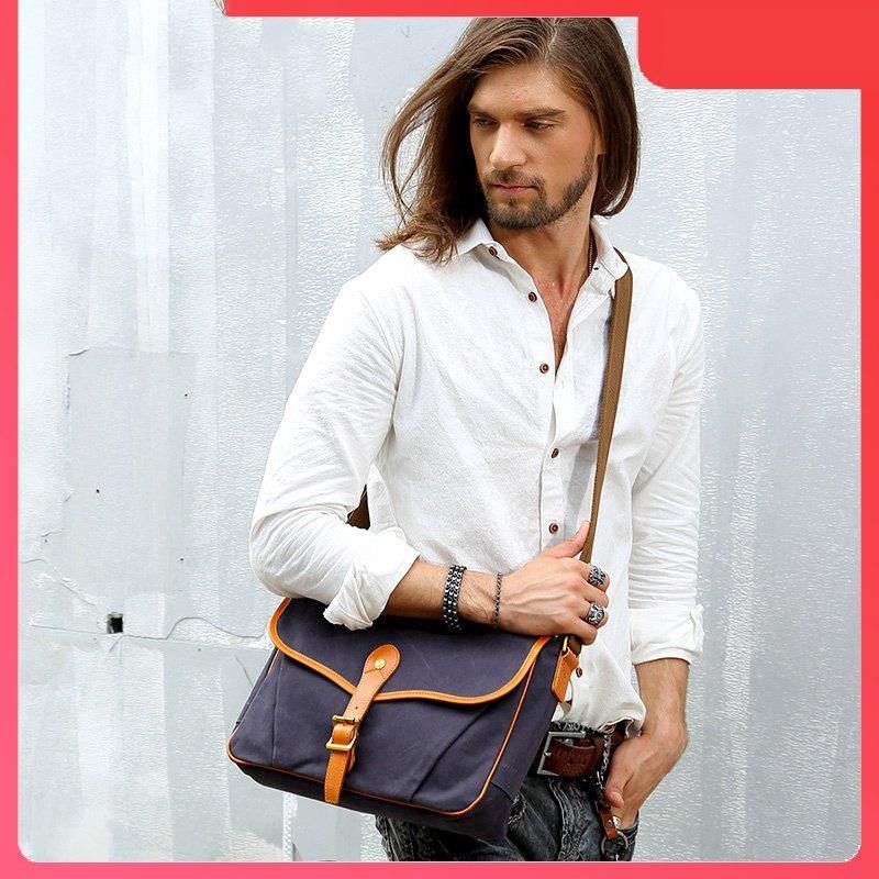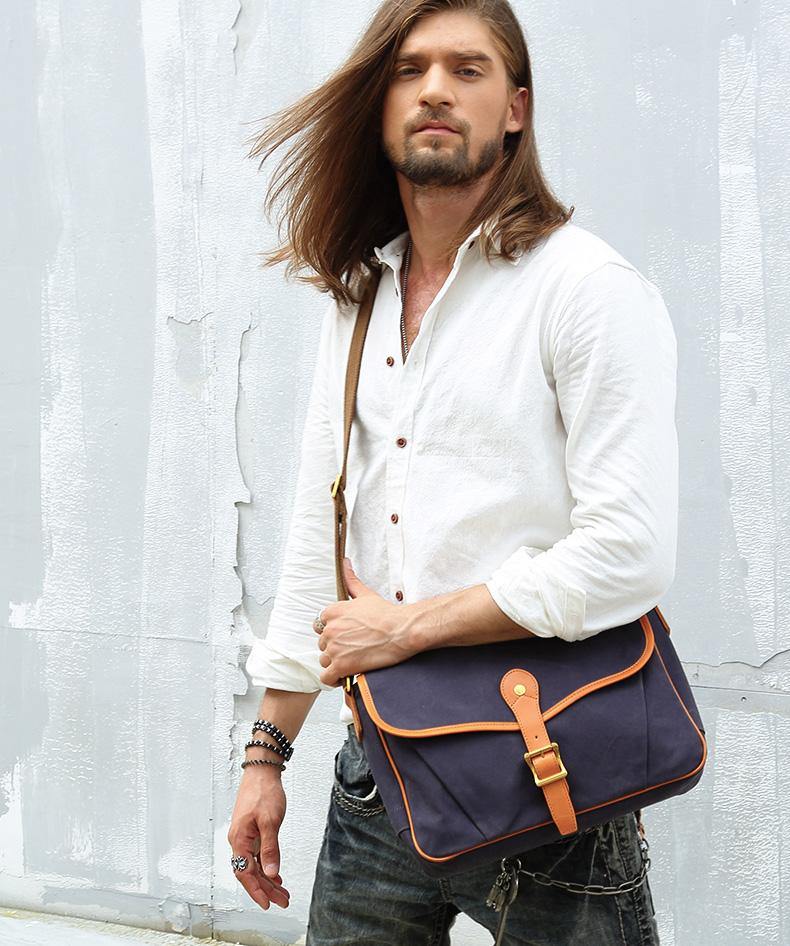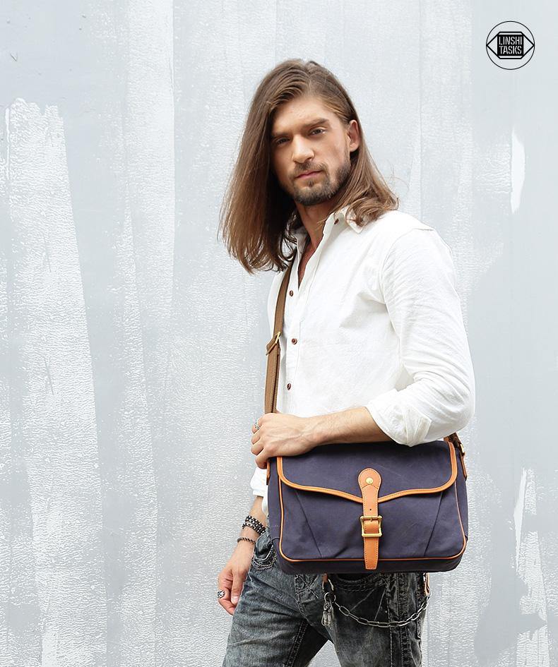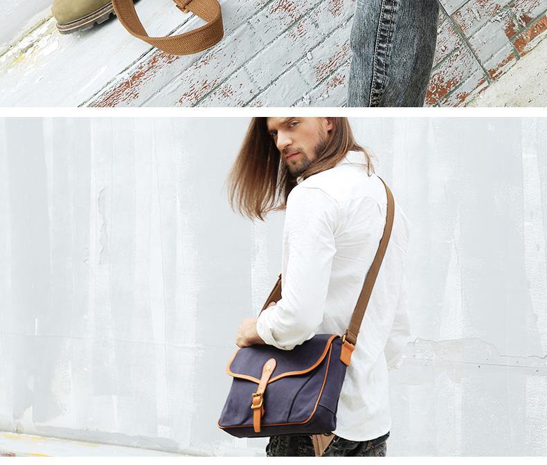 Design: Navy Blue Canvas Mens Casual Side Bag Side Bag Small Messenger Bags Casual Courier Bags for Men