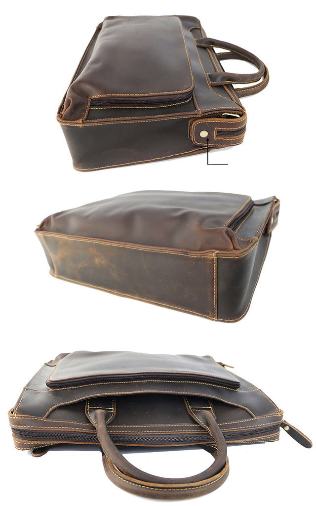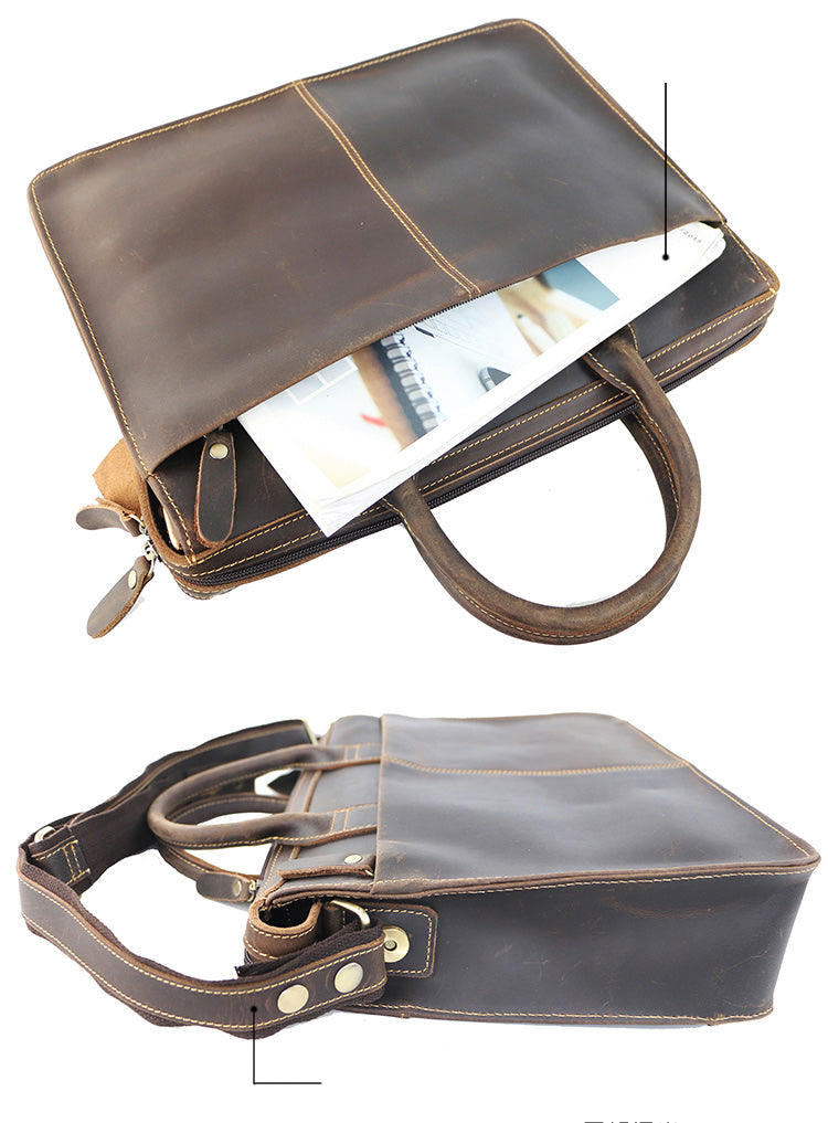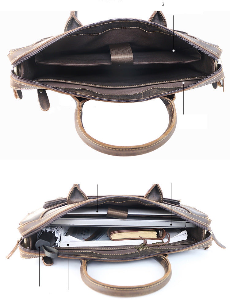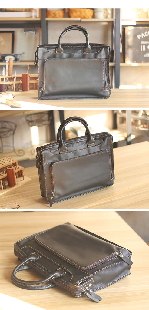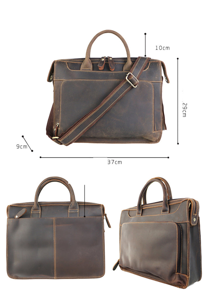 Design: Retro Black Mens Leather Briefcase Work Handbag Black 14'' Computer Briefcases For MenOverview: