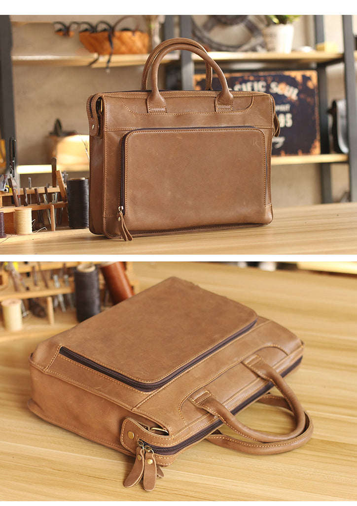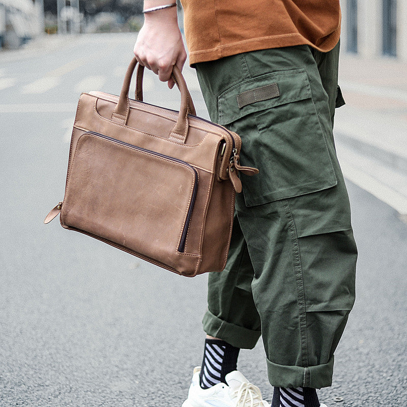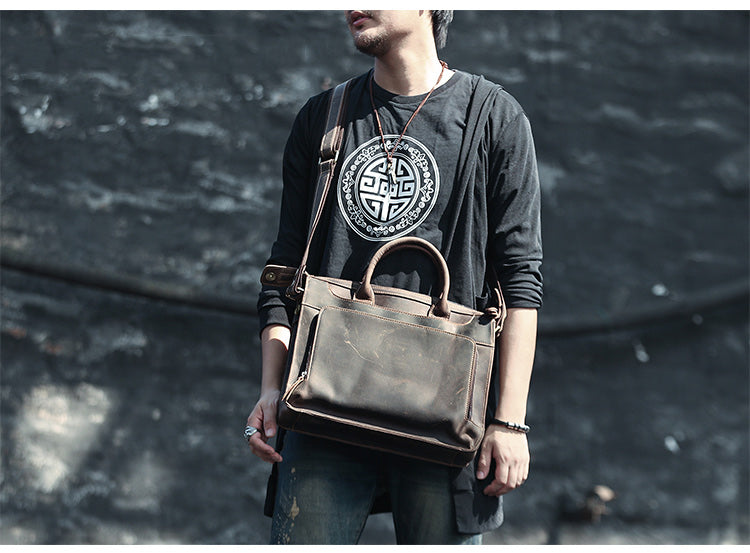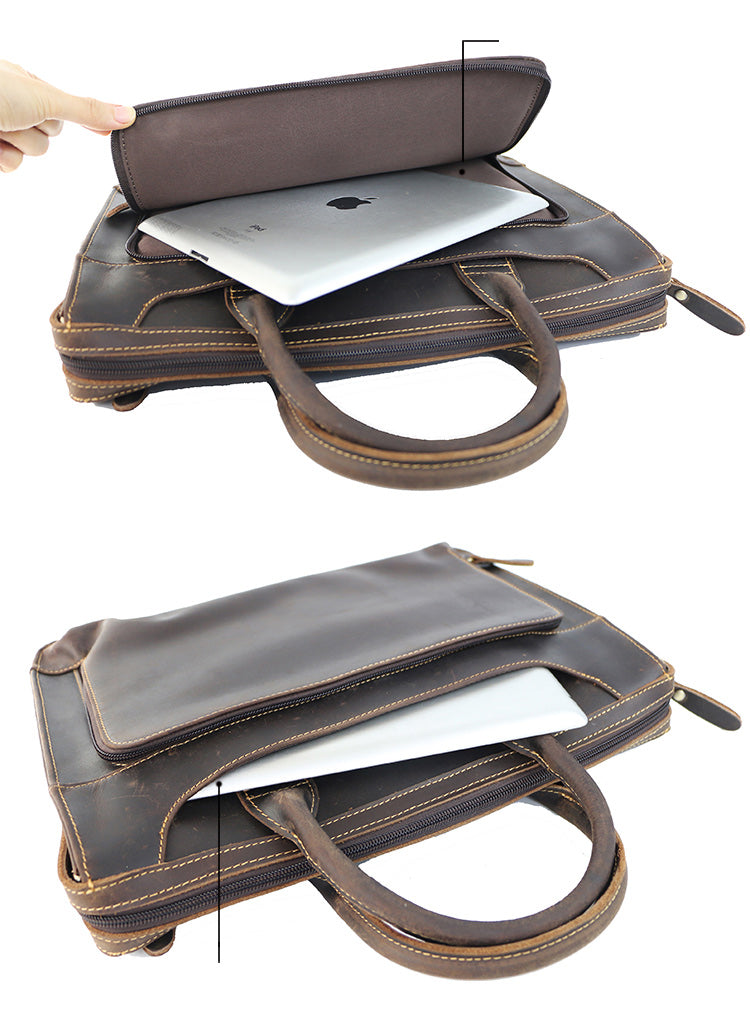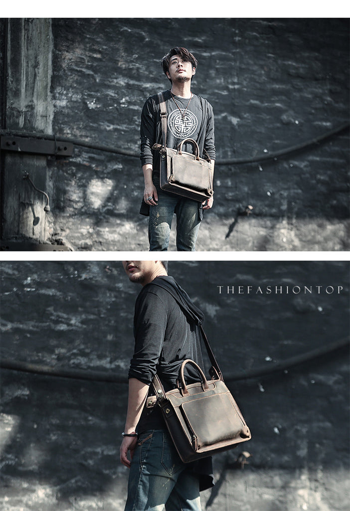 Design: Retro Black Mens Leather Briefcase Work Handbag Black 14'' Computer Briefcases For MenOverview: