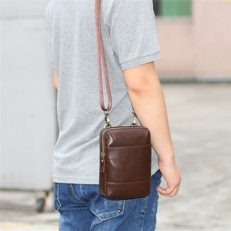 Design: Fashion Brown Leather Men's Belt Pouch Belt Bag Black Mini Side Bag For MenOverview: