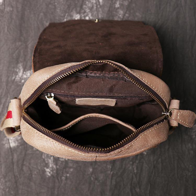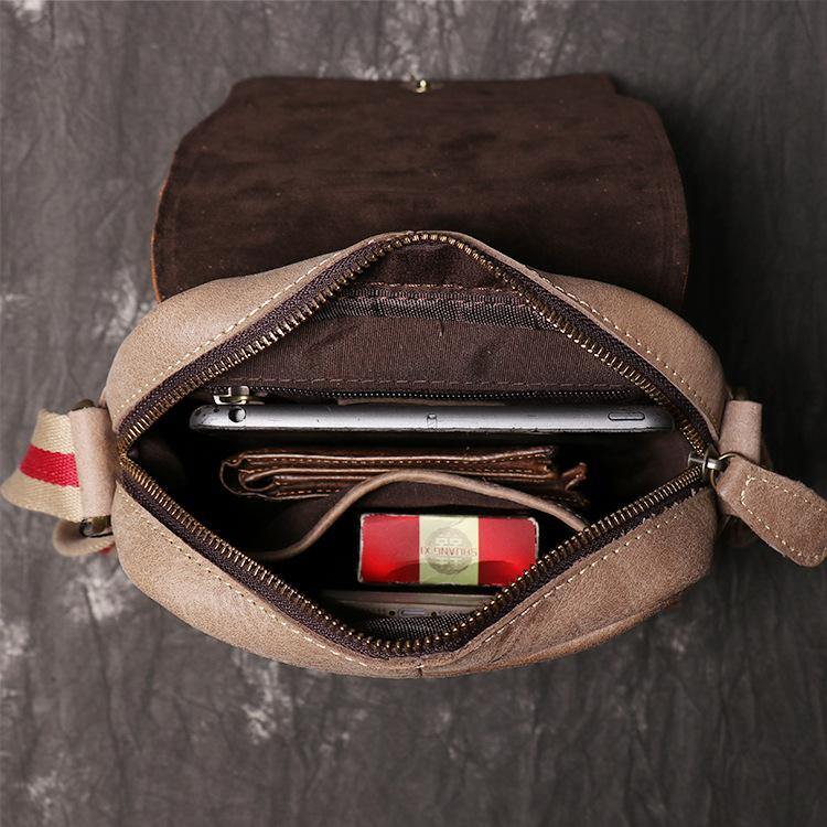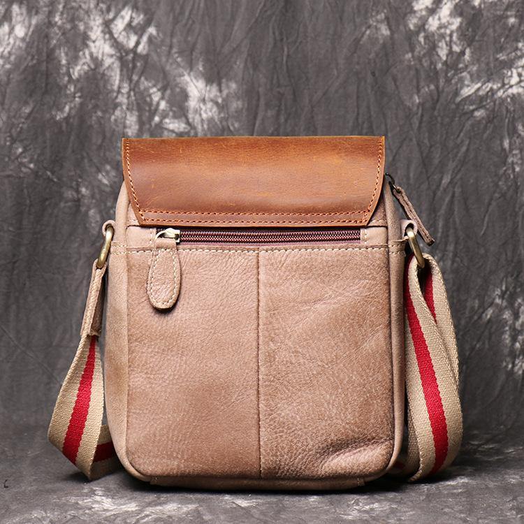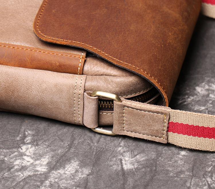 Design: Simple Khaki Brown LEATHER Mens Vertical SIDE BAG COURIER BAG Vertical MESSENGER BAG FOR MEN