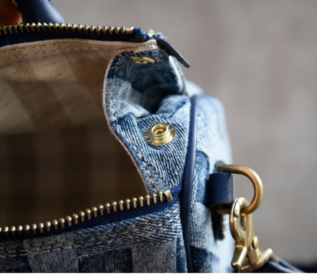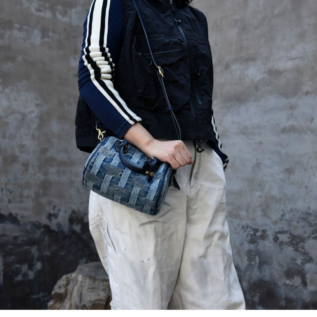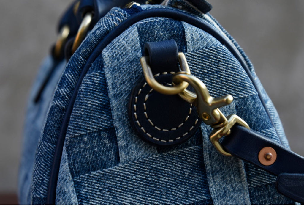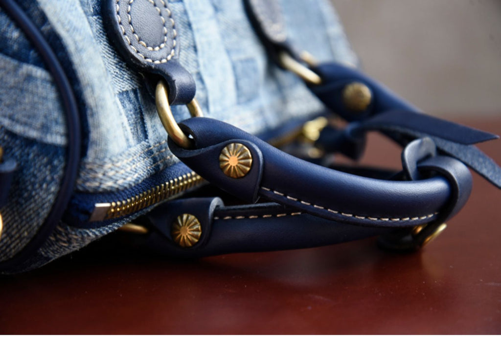 Design: Small Denim Boston Bag Denim Handbags for Women Blue Denim Crossbody Bag for WOmen