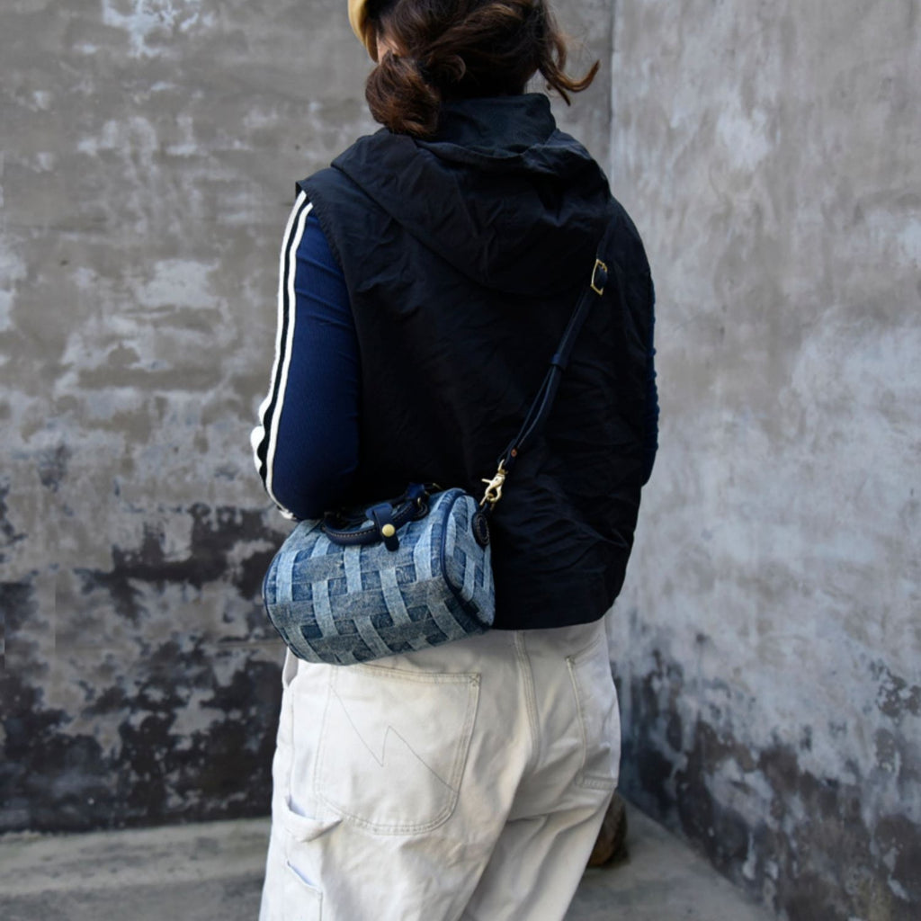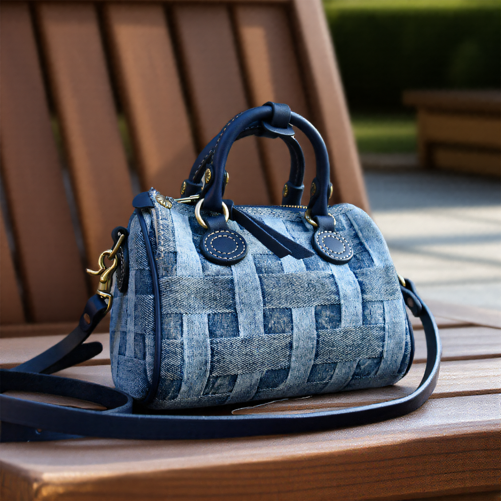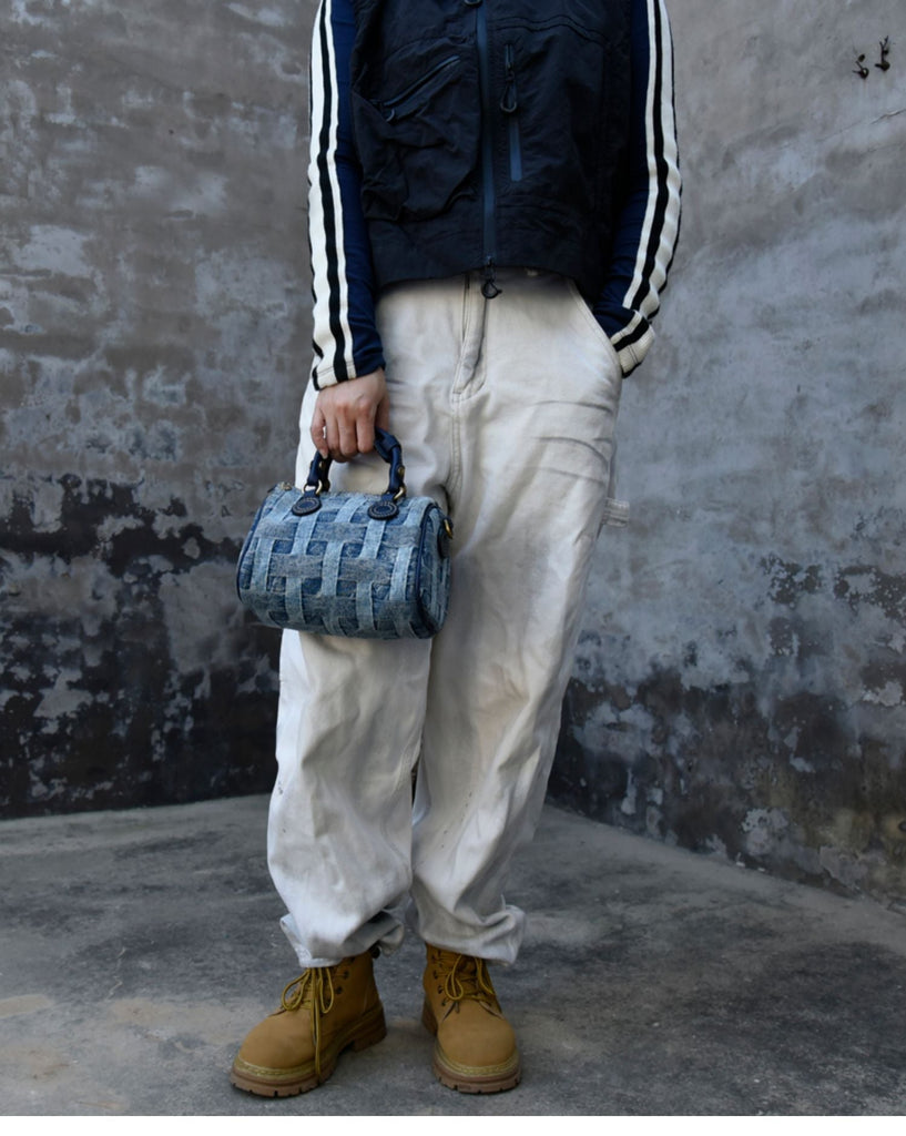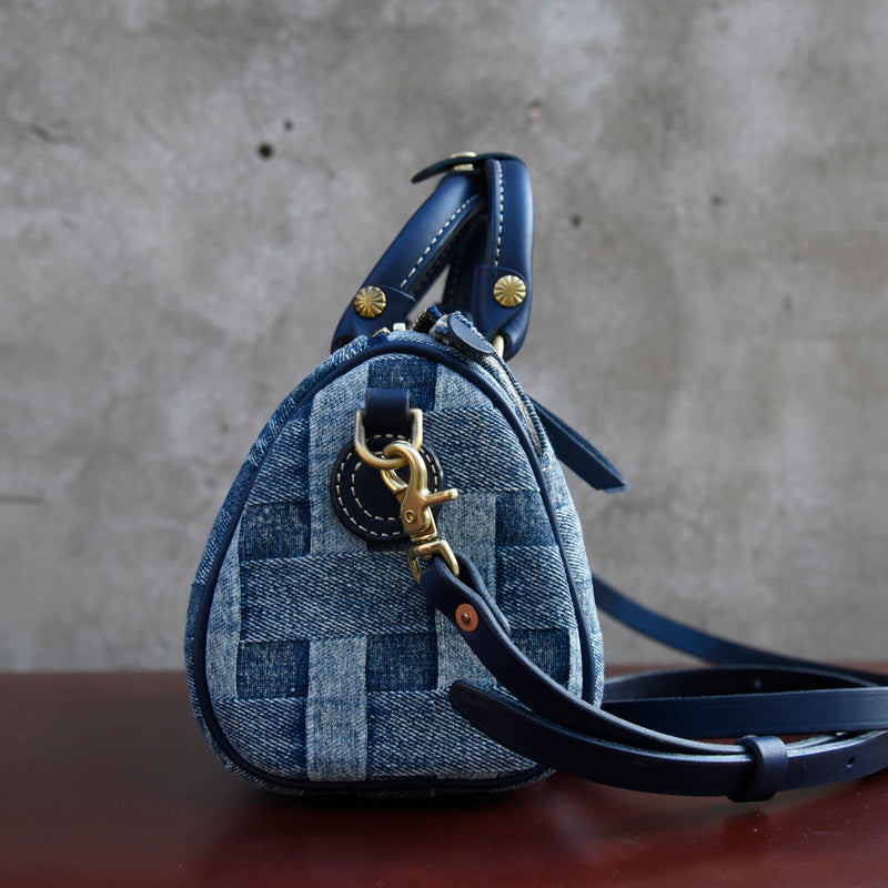 Design: Small Denim Boston Bag Denim Handbags for Women Blue Denim Crossbody Bag for WOmen