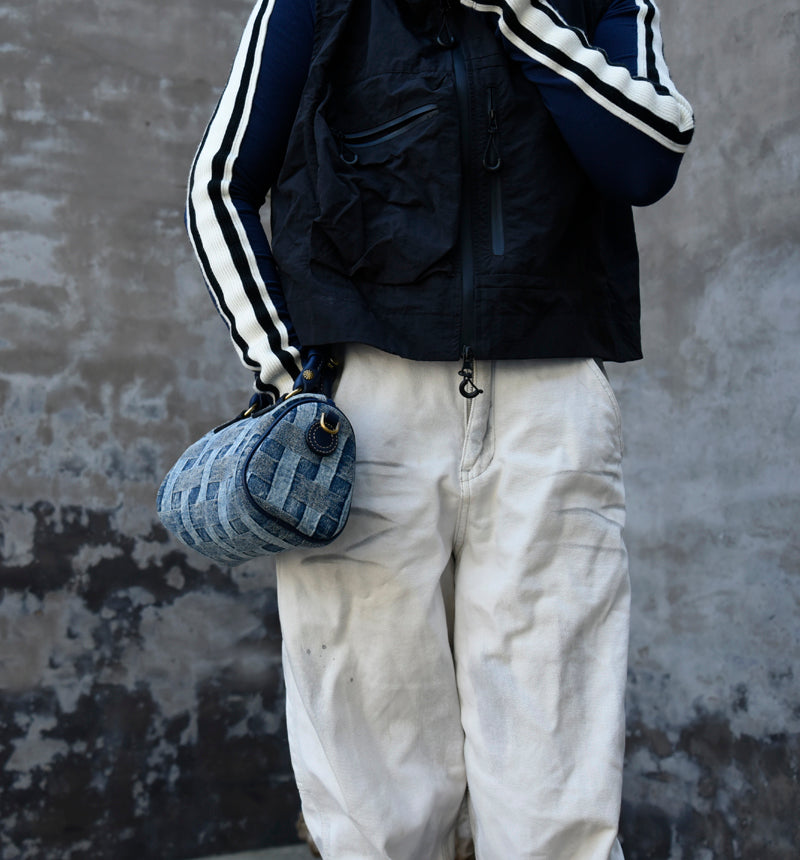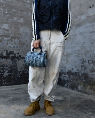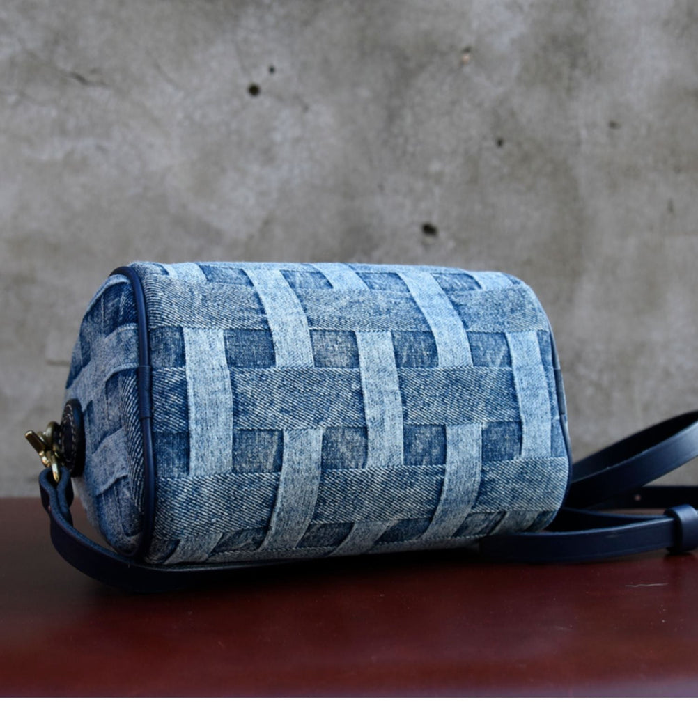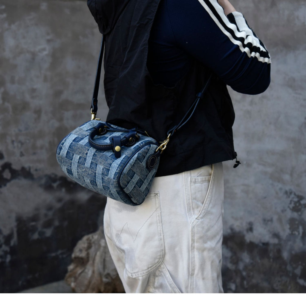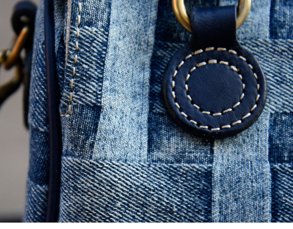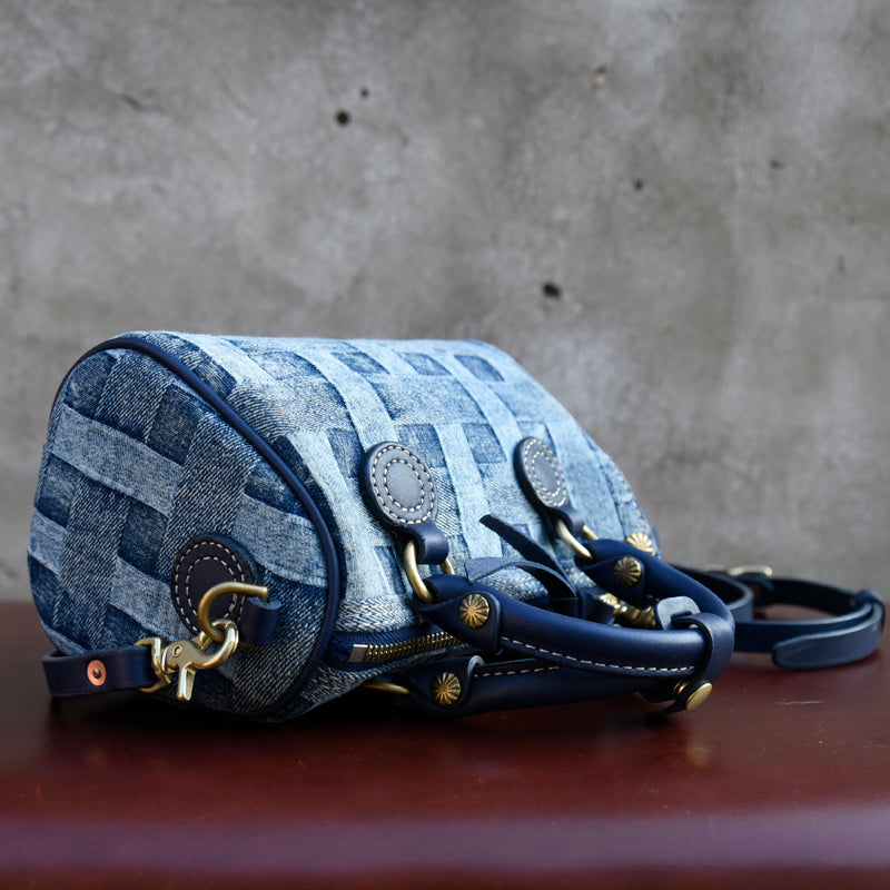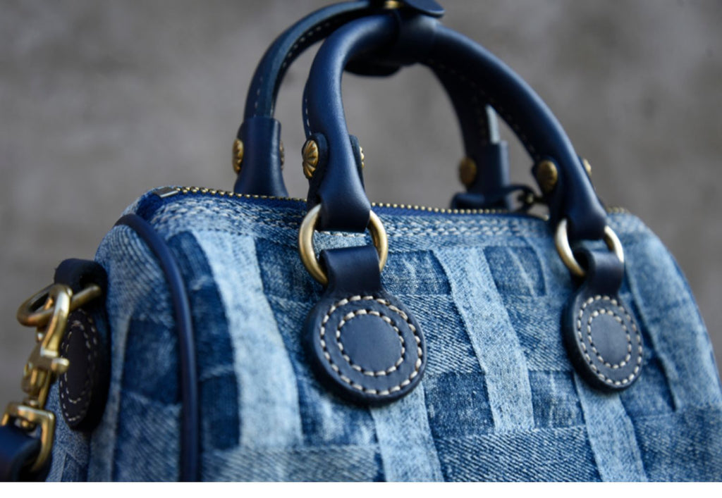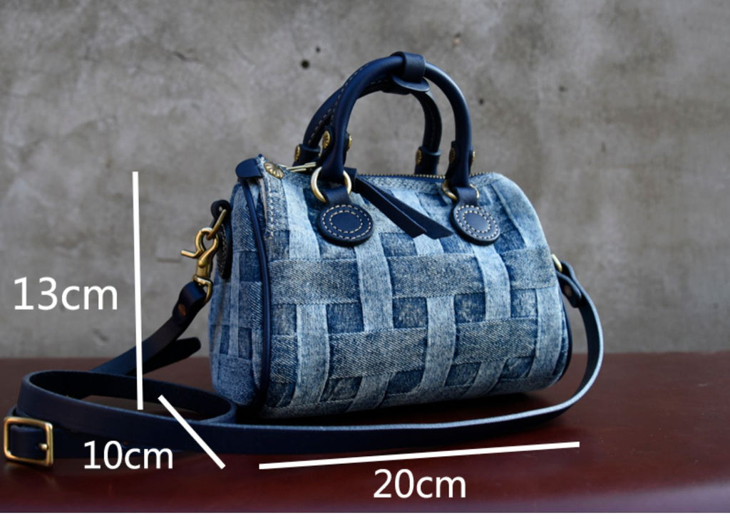 Design: Small Denim Boston Bag Denim Handbags for Women Blue Denim Crossbody Bag for WOmen