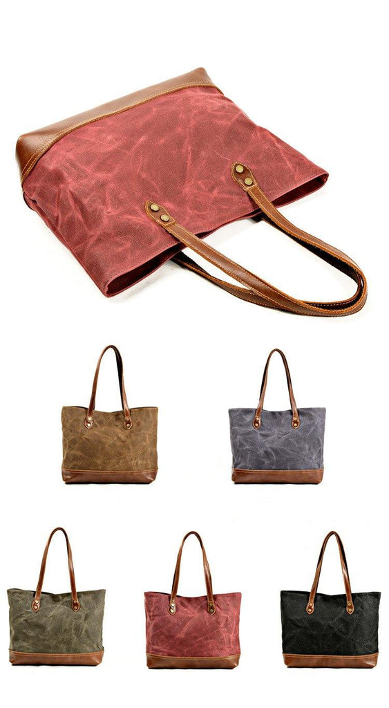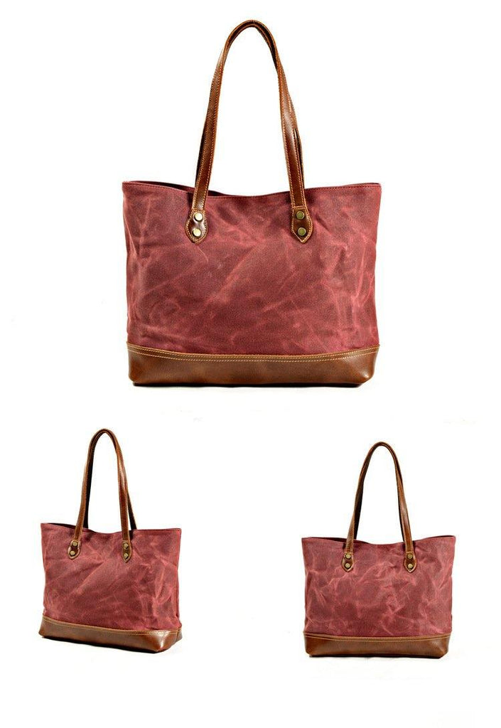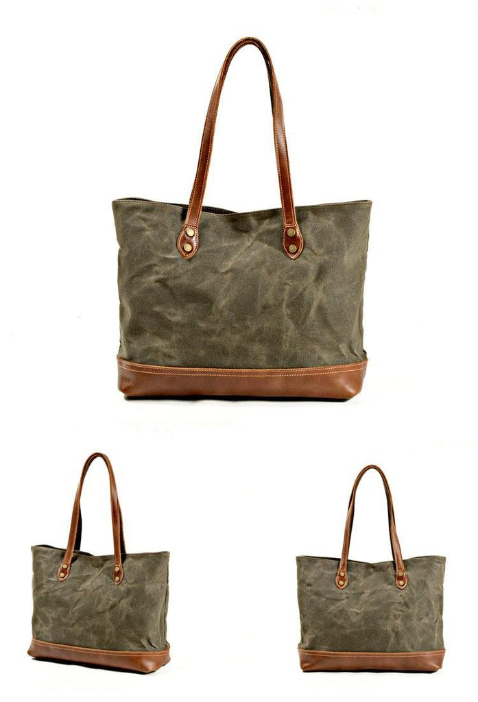 Style: Waxed Canvas Mens Womens Tote Handbag Messenger Bags Camel Canvas Shoulder Tote Bag For Men and Women