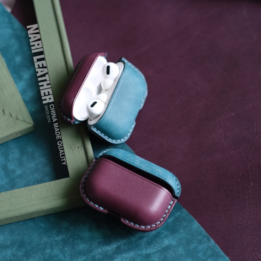 Personalized Purple&Blue Leather AirPods Pro Case Custom Blue&Purple Leather Pro AirPods Case Airpod Case Cover