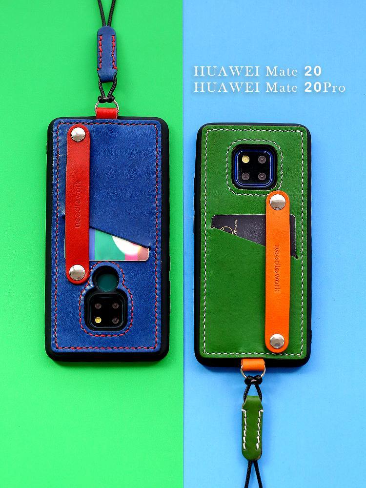Style: Handmade Black Leather Huawei Mate 20 Pro Case with Card Holder CONTRAST COLOR Huawei Mate 20 Pro Leather Case