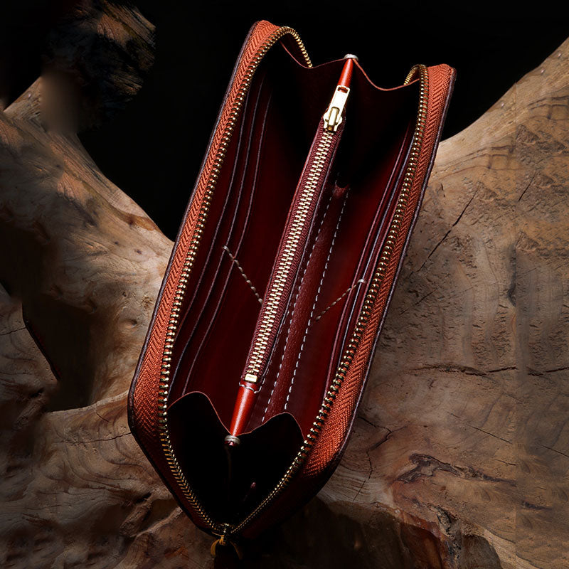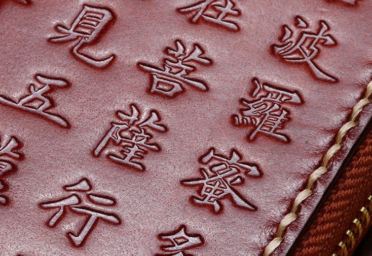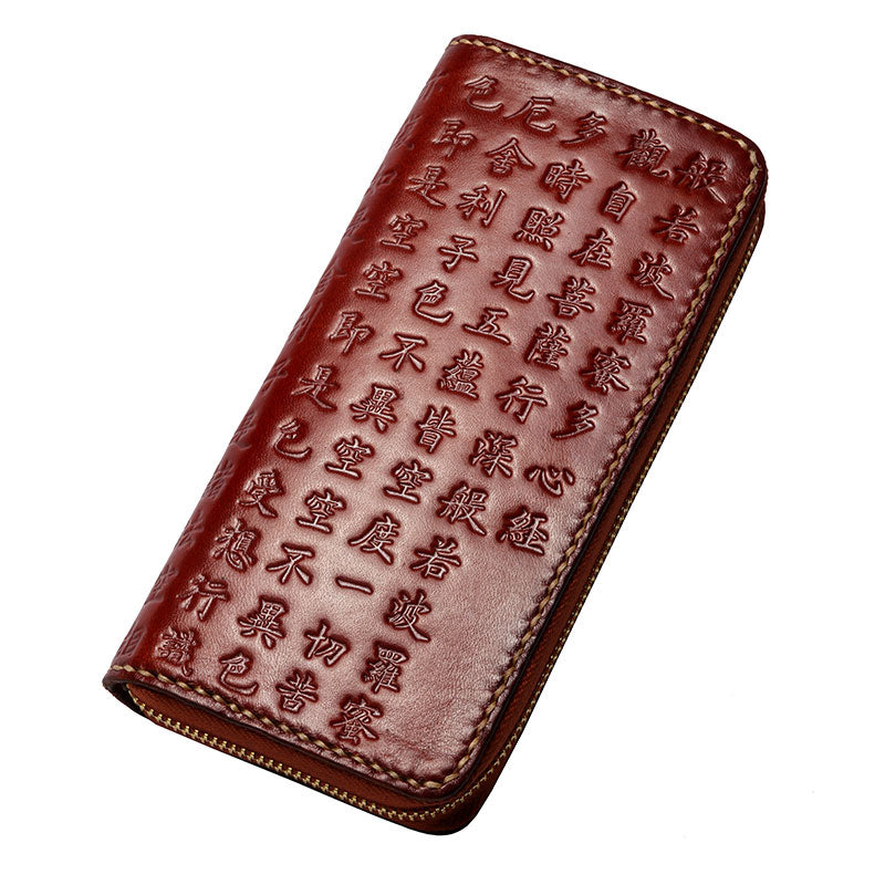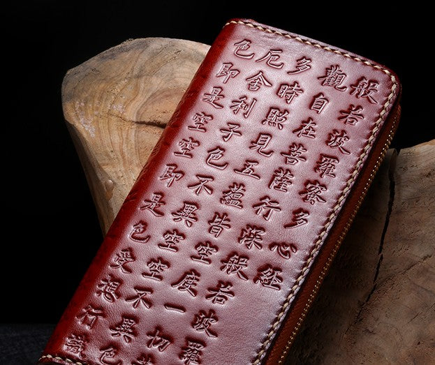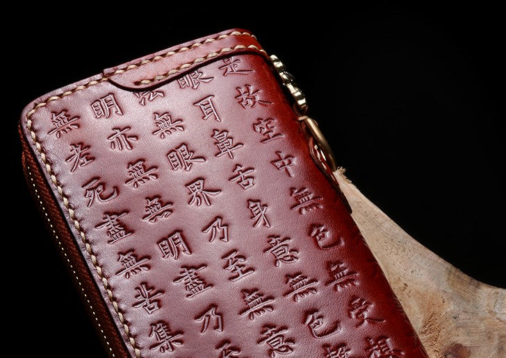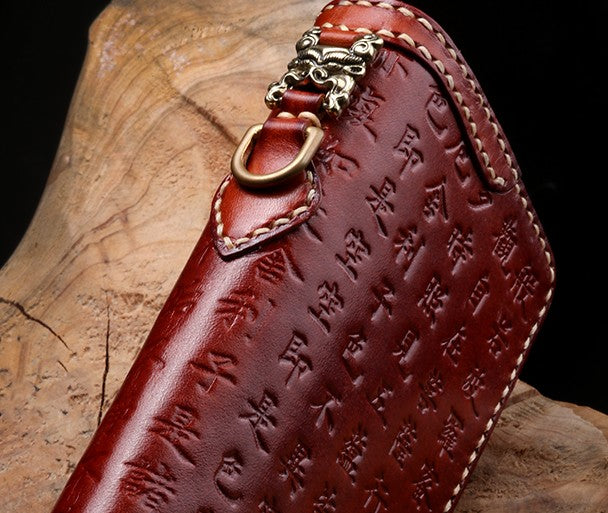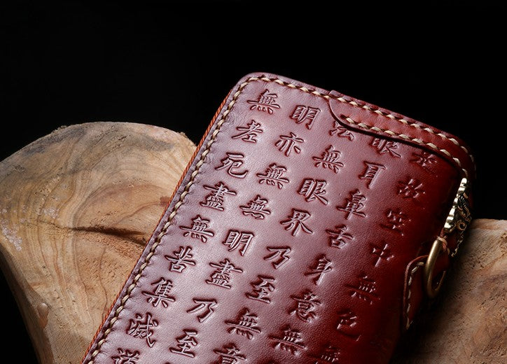 Design: Handmade Leather Mens Chain Prajna Paramita Biker Wallet Cool Leather Wallet Long Phone Wallets for Men