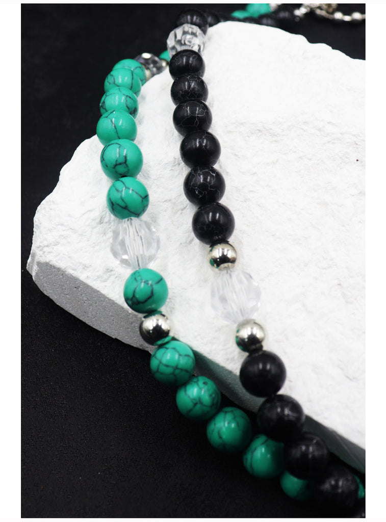 Design: Beaded Wallet Chain Green Turquoise Stone Ball Wallet Chain Double Wallet Chain